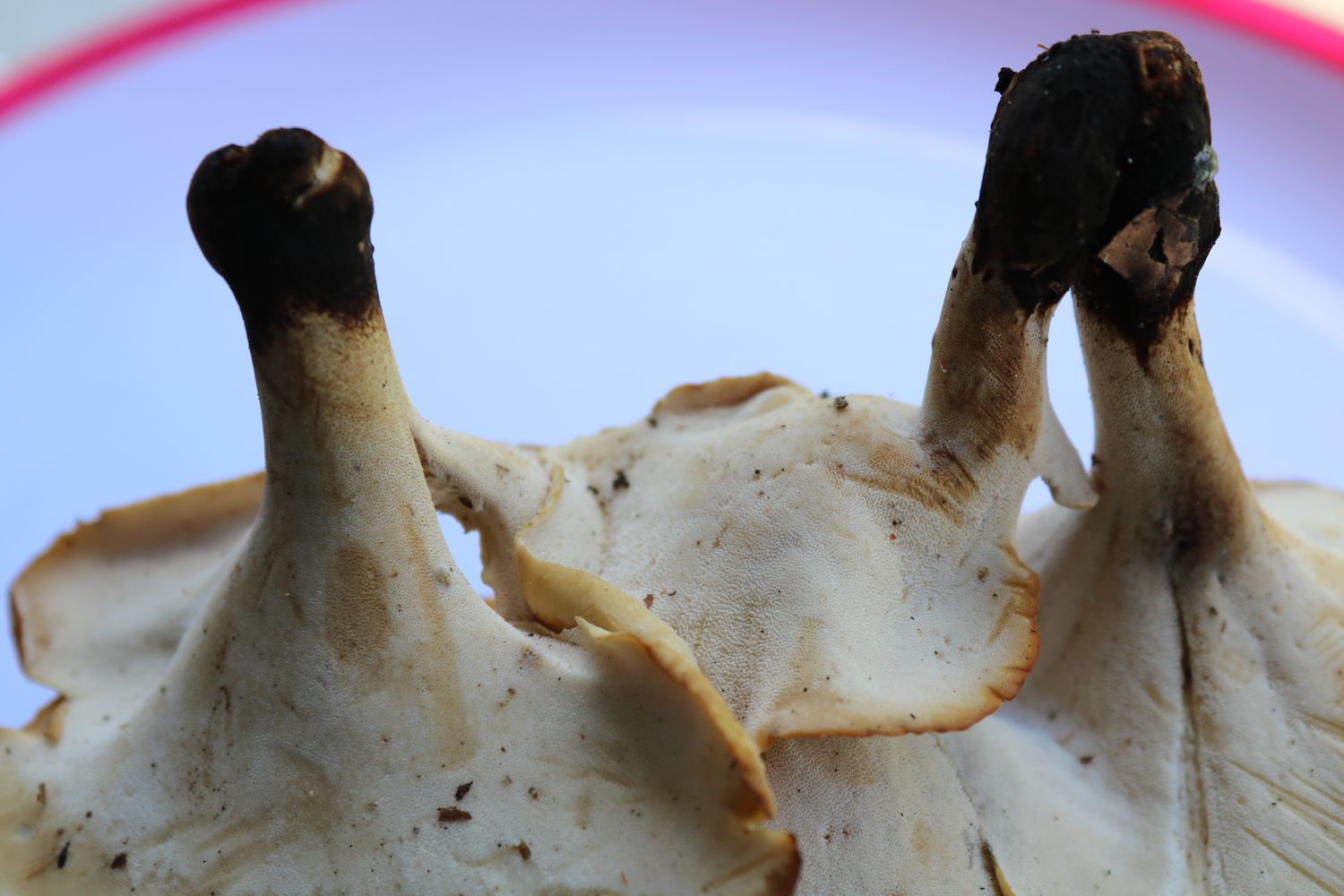 Von Porling die erste Bilder sind mich nicht ganz Klar , zu viel alles gelb (nicht optimal nicht Natur - meine auch das mein Bildschirm fuchst auch) ?. aber die letzte 3 Bilder , Pilz an Teller von unten Fotografier schaut 1 zu 1 an Poliporus badius .