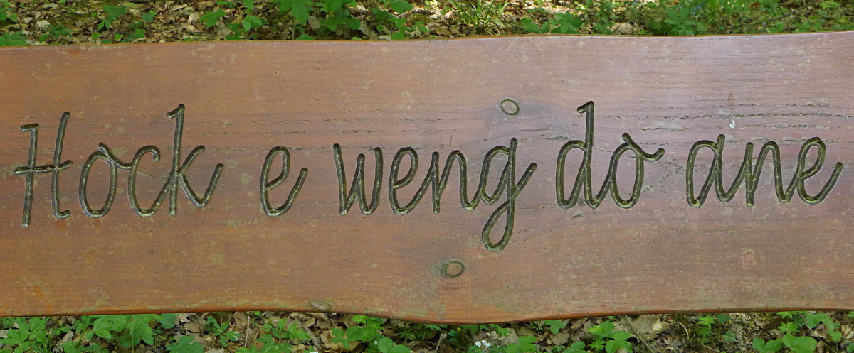 das stand auf einer Bank im Wald in Lörrach - eine Einladung, sich ein wenig hinzusetzen.