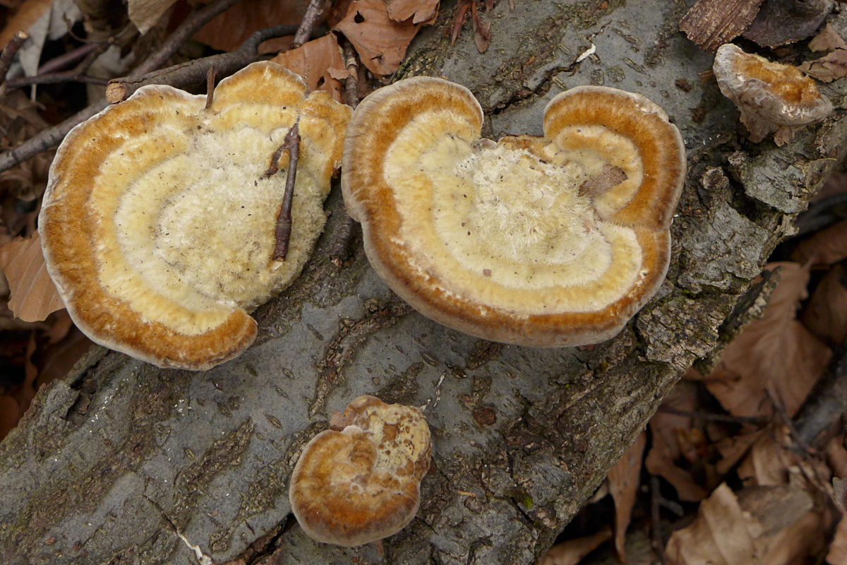 oder nicht (= eventuell Trametes ochracea, vorausgesetzt, dass die Pilze nicht zu jung sind, um die Linie schon ausgebildet zu haben.)