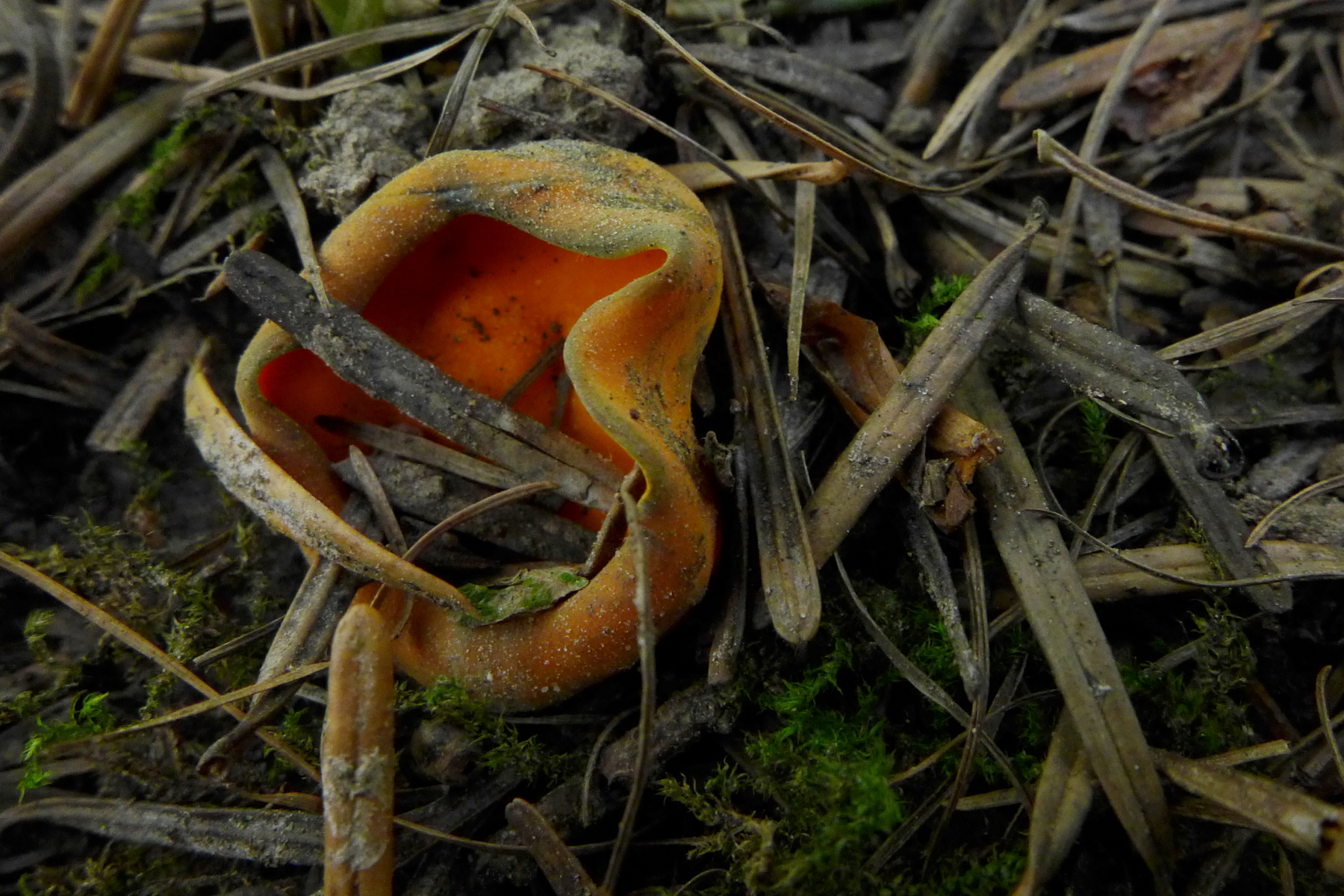Leuchtende Prachtbecherlinge, Caloscypha fulgens, hatte ich in einem Tannenareal 2016 sehr viele gefunden, 2017 keinen einzigen, 2018 nur ca. 5 sehr kleine Exemplare (ca. 15-20 mm Durchmesser). Ich glaube, in diesem Jahr sind hier im Forum gar keine gezeigt worden?