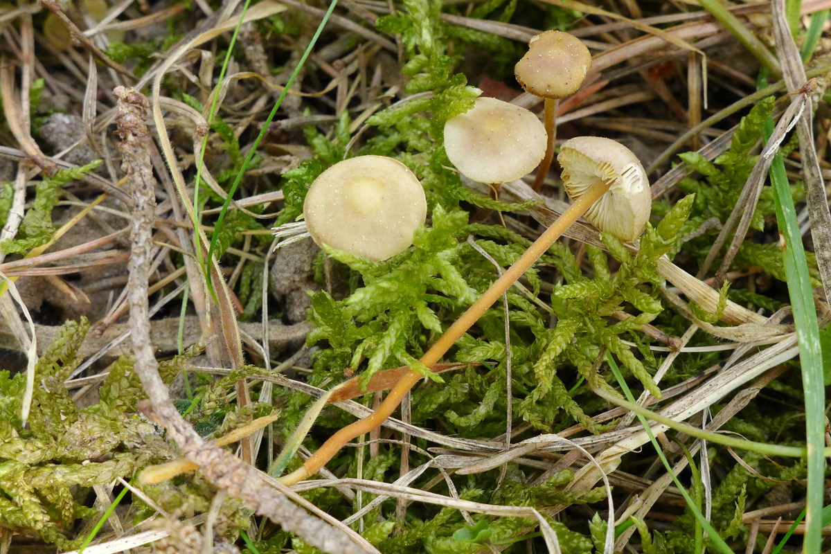 Auch dort ... eingetrocknete Samthäubchen, Conocybe spec. im (trockenen) Gras.