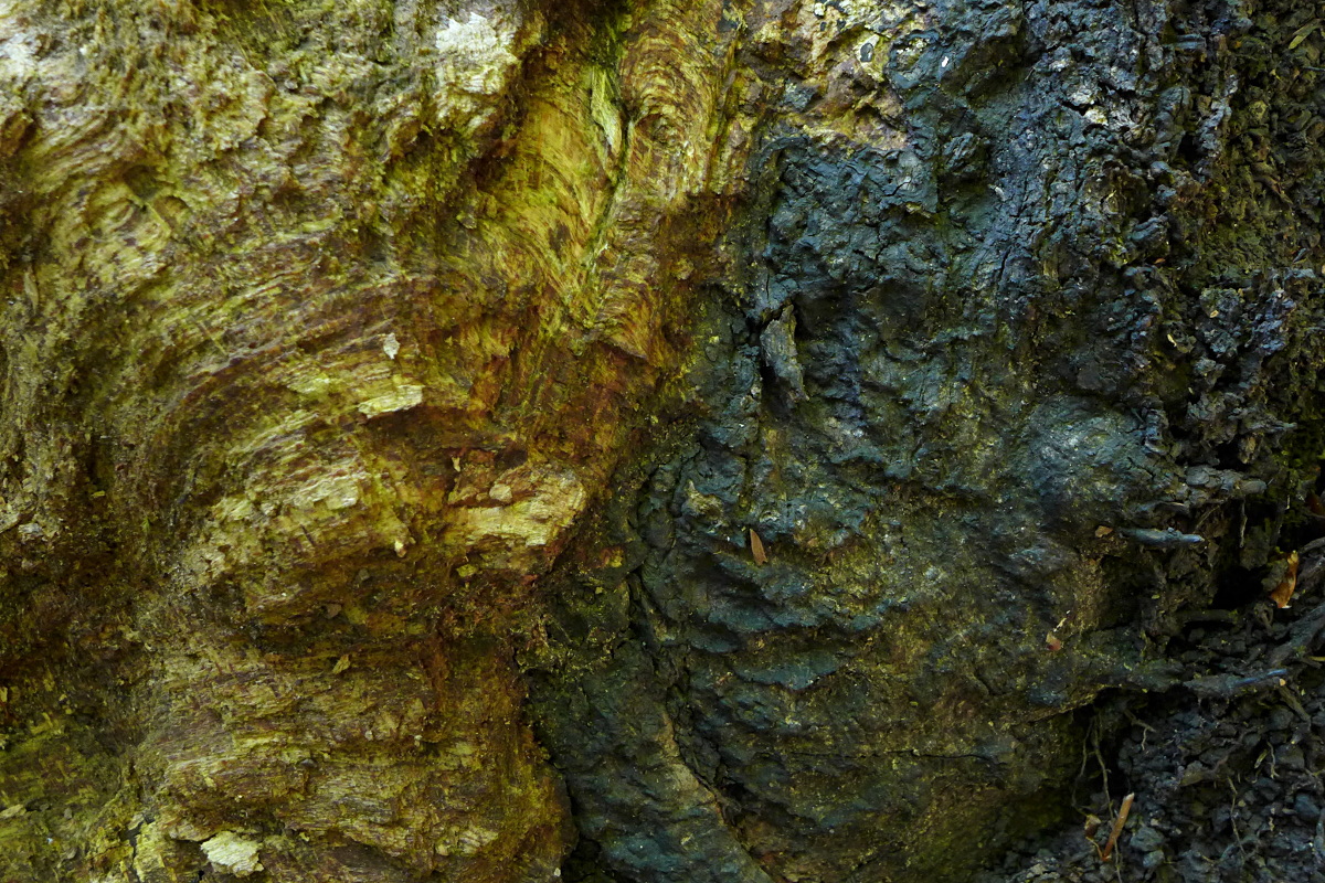 aber sichtbar sind nur Verfärbungen, die sehr wahrscheinlich vom Brandkrustenpilz, Kretzschmaria deusta herrühren.