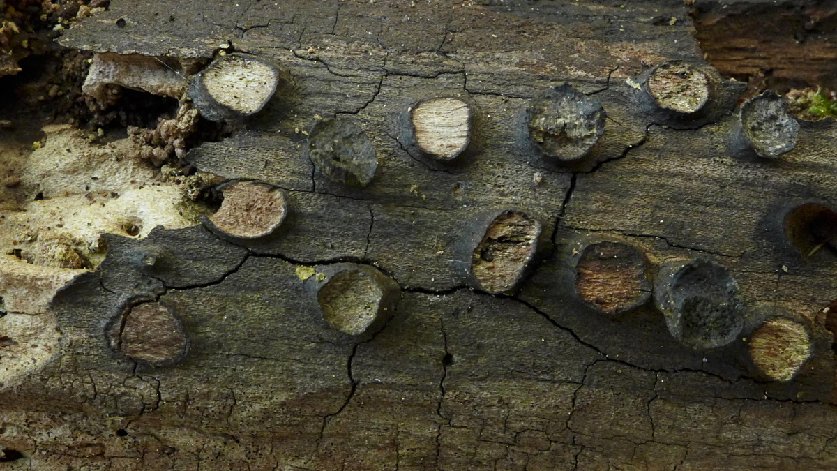 Diese Strukturen an einem dicken Buchentotholzast stammen meiner Meinung nach von Biscogniauxia marginata .