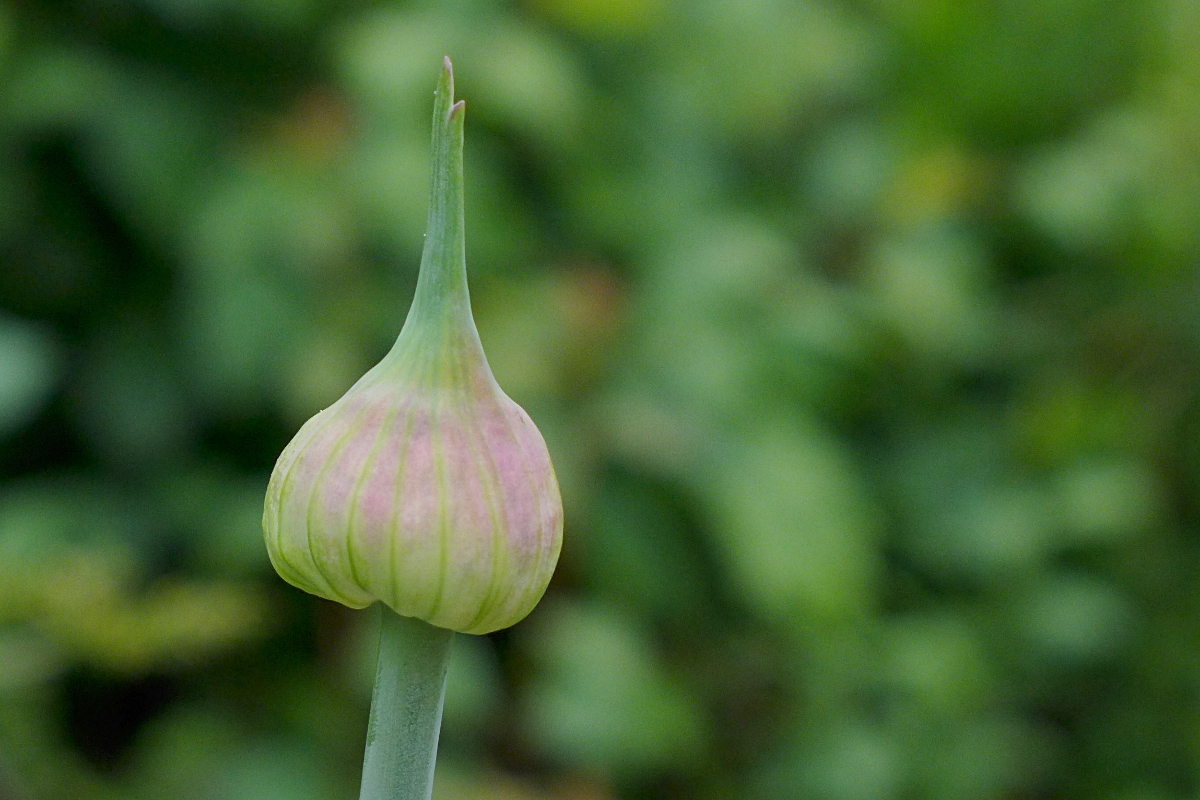 Weinbergslauch, Allium vineale, in Knospe, rot angehaucht