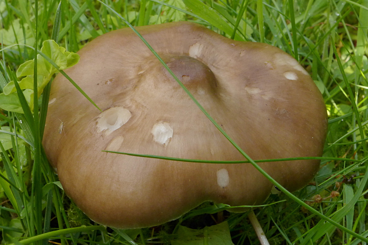 Ein Pilz, ein Pilz - EIN Pilz (seiner Art) auf dem Stadtfriedhof Rheinfelden. Groß, braun, leicht radialfaserig und mit deutlichem Buckel!