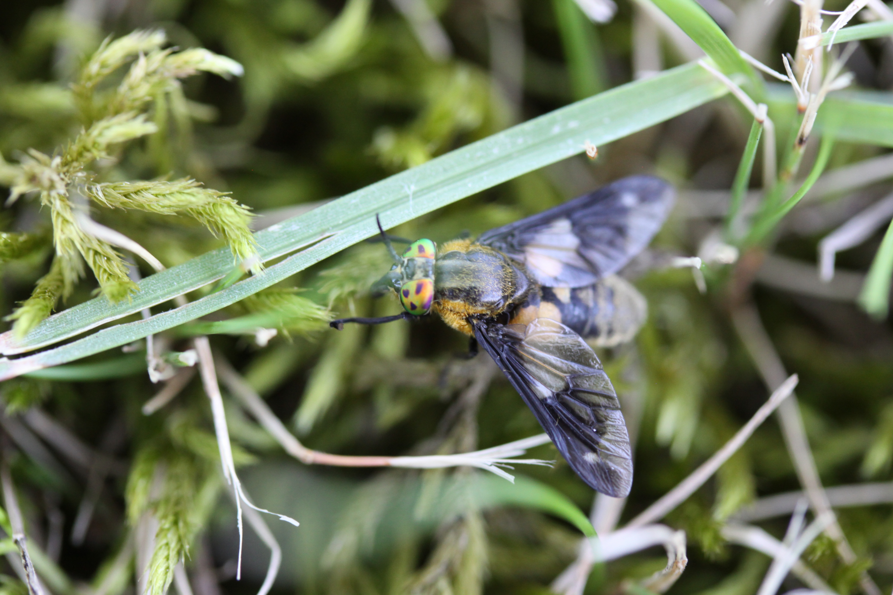 Ich vermute, dass es sich um Chrysops relictus handelt - und zwar um ein Weibchen, da sich die Augen nicht berühren. Ich kenne mich mit Bremsen aber nicht aus. Kann da jemand weiterhelfen und mir die Bestimmung bestätigen oder ausreden? Und falls letzteres, eine Idee äußern, was es sein könnte?!