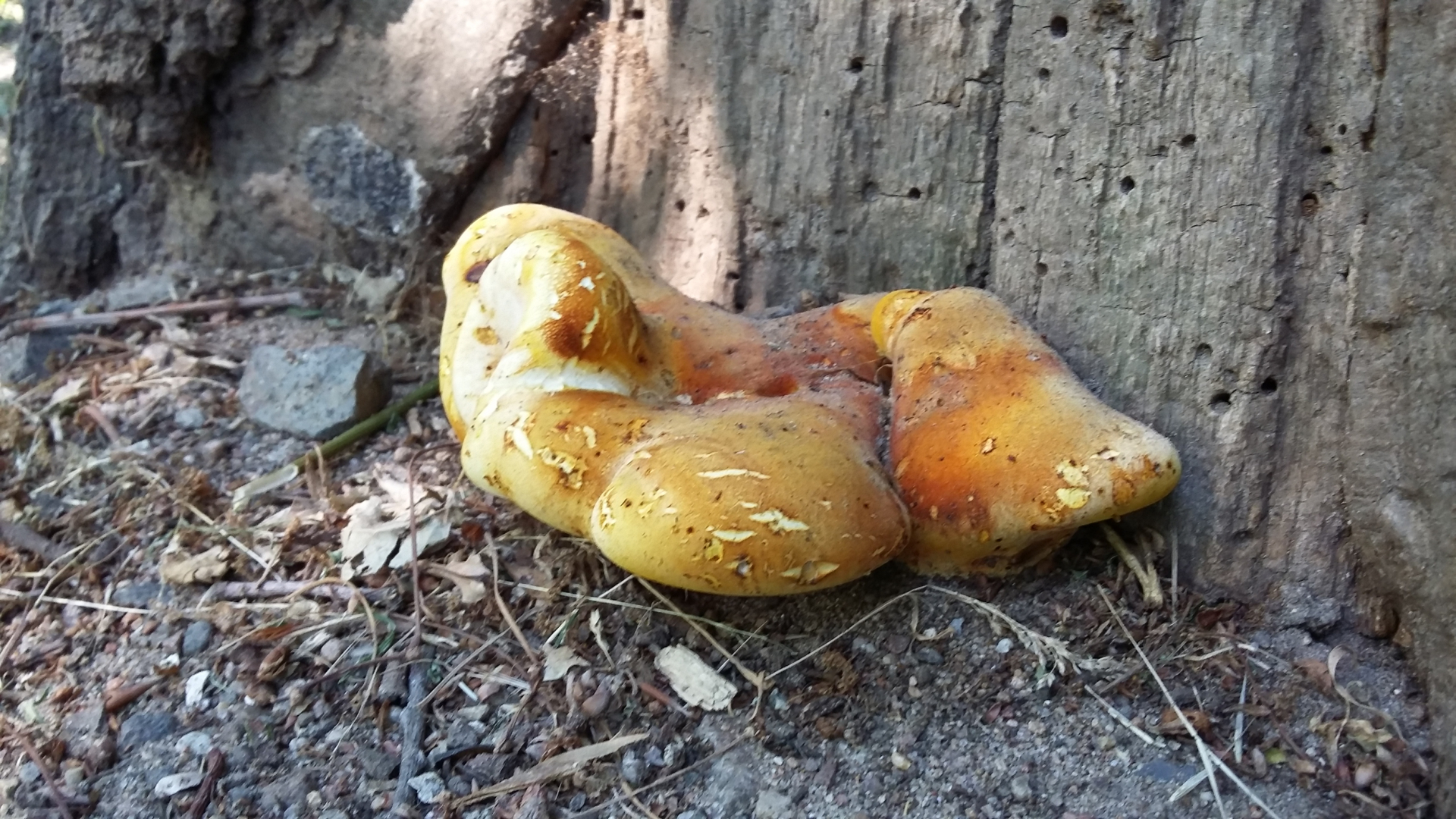 Ich würde hier einen Schillerporling vermuten und aufgrund des Standorts den Tropfenden (I. dryadeus) in Erwägung ziehen.