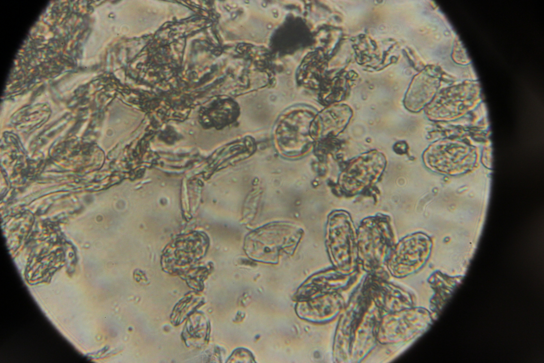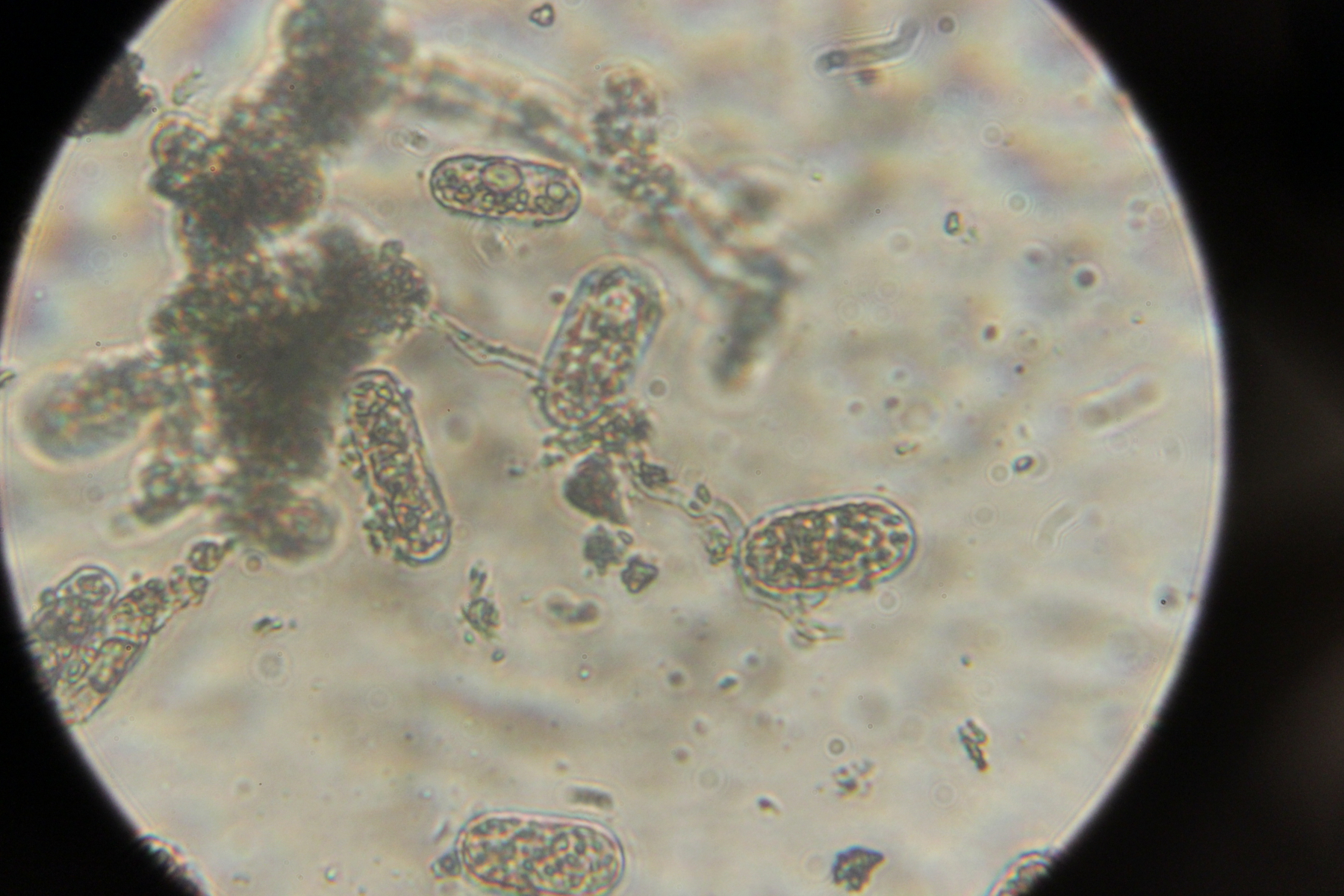5. Erysiphe flexuosa auf Aesculus hippocastanum, an den Öltröpfchen in den Konidien gut zu erkennen