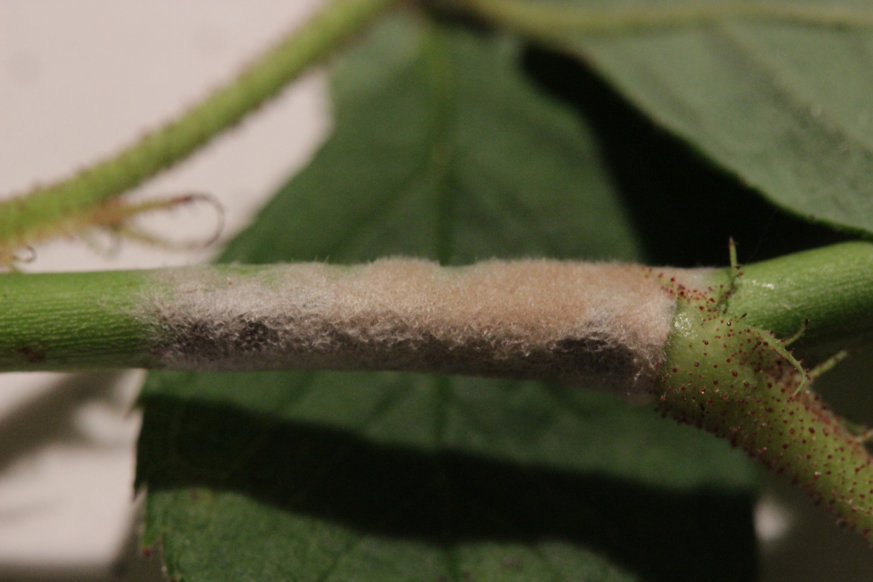 2. Erysiphe vanbruntiana var. sambuci-racemosae auf Sambucus nigra, Fruchtkörper sind noch nicht voll ausgebildet, deshalb gibt es keine verzweigten Anhängsel zu bestaunen.