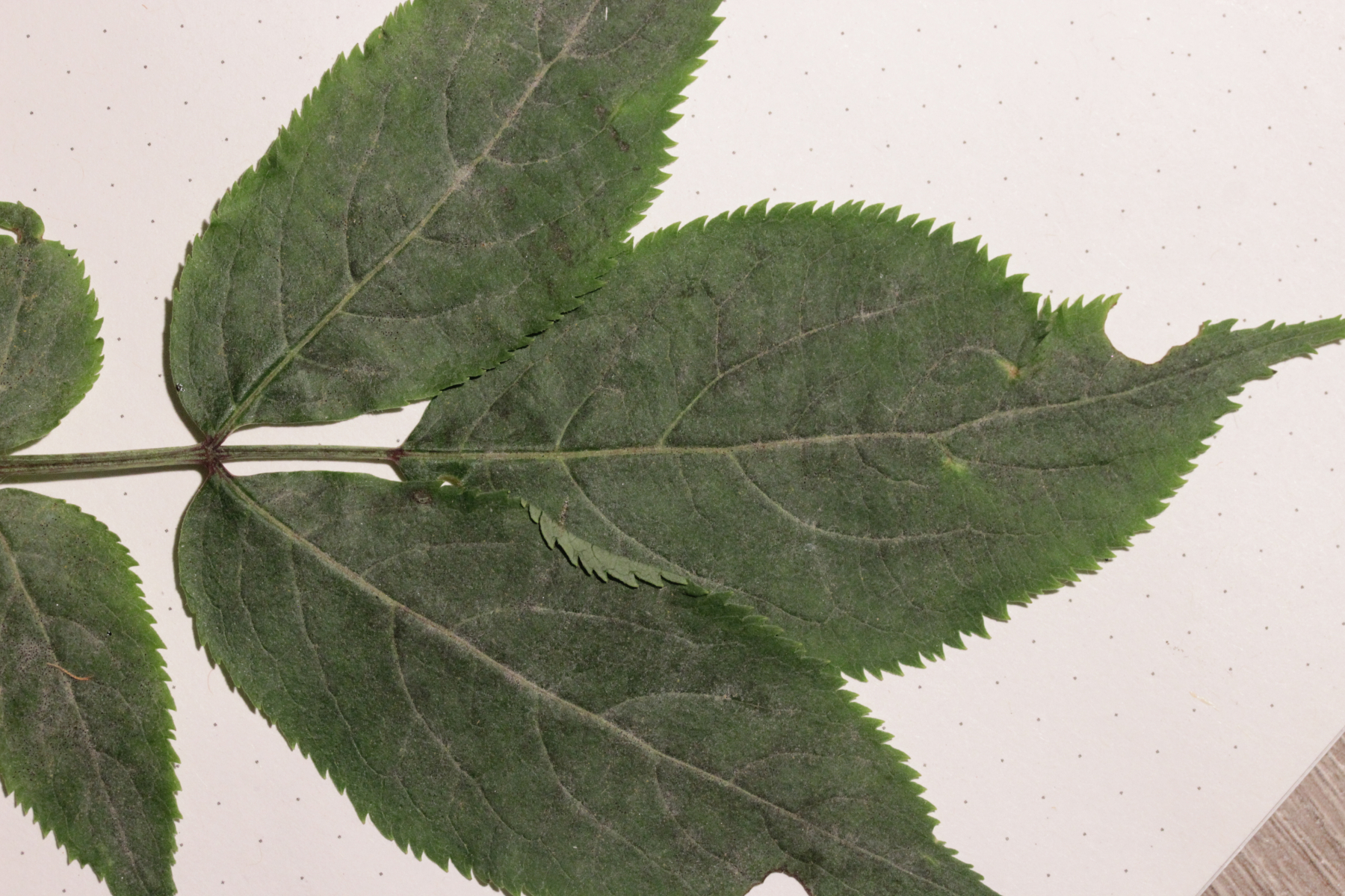2. Erysiphe vanbruntiana var. sambuci-racemosae auf Sambucus nigra, Fruchtkörper sind noch nicht voll ausgebildet, deshalb gibt es keine verzweigten Anhängsel zu bestaunen.