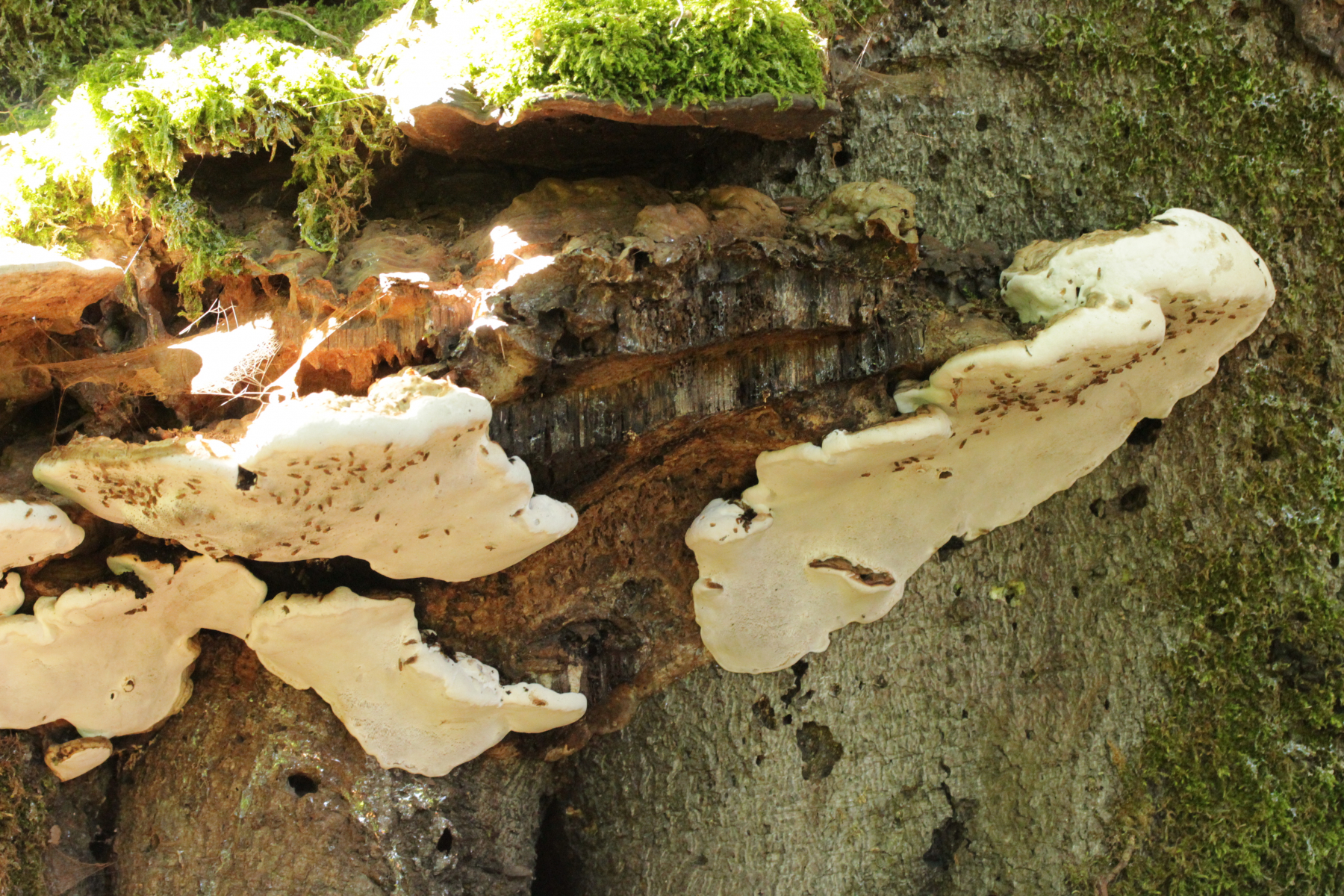 Der Phellinus wird in die Gruppe resupinater Arten um Phellinus ferrugineus gehören. Feuerschwämme sind erzundankbar zu mikroskopieren, das ist eigentlich immer ein enormes Gefuddel.