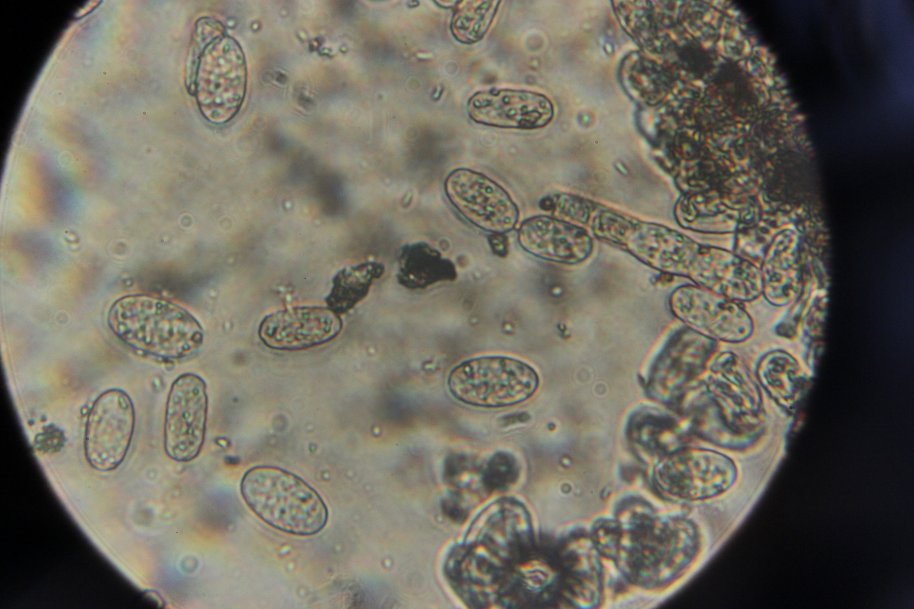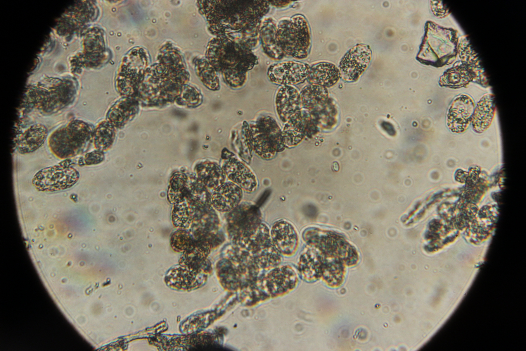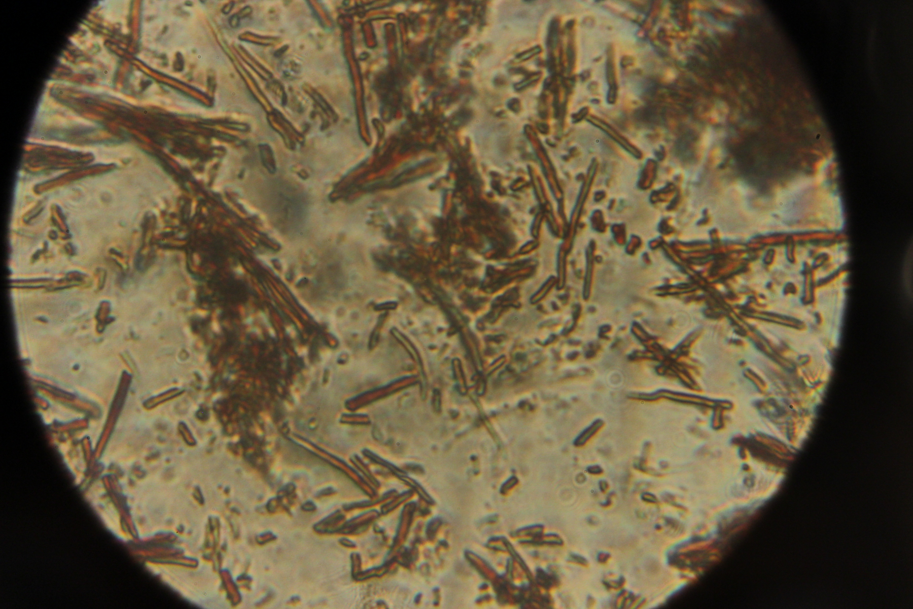 5. Phellinus sp. Im Mikroskop gab es leider nur diese Ansammlung von Hyphenstückchen zu bewundern.