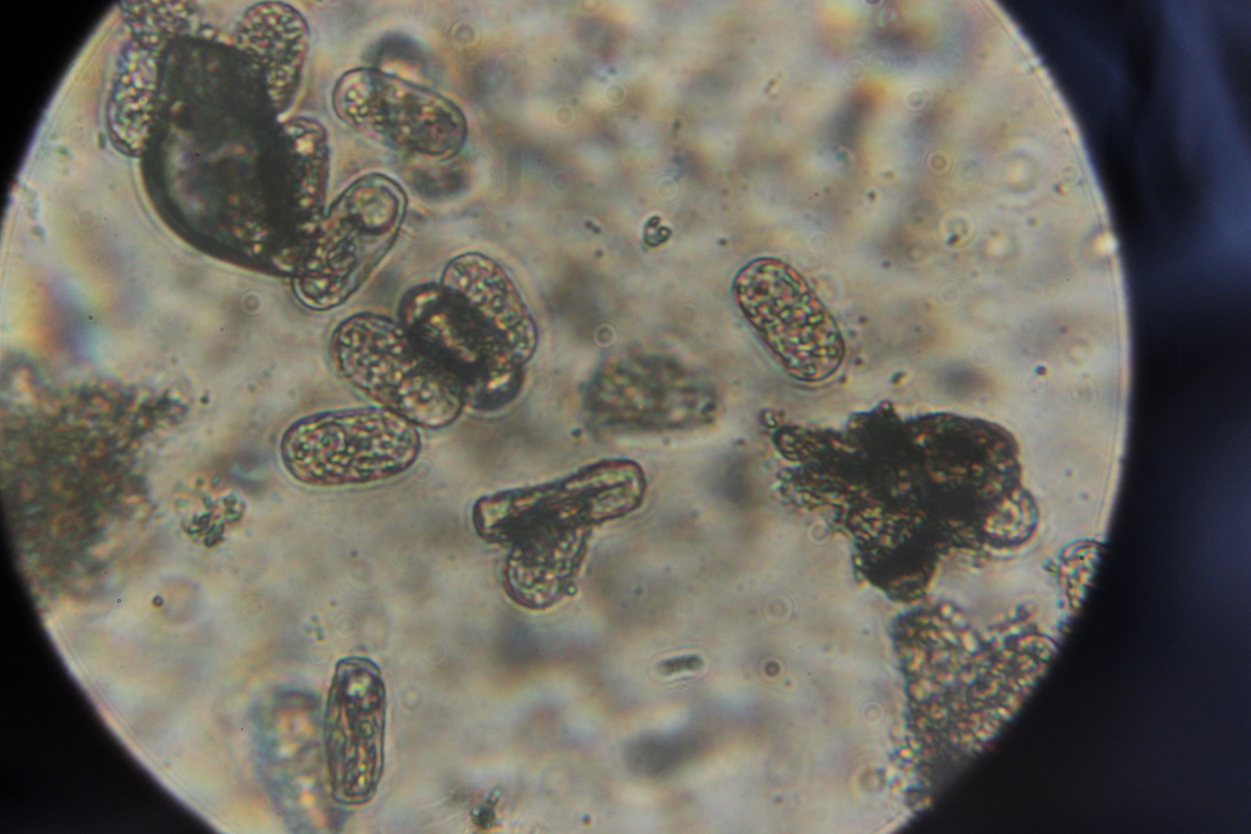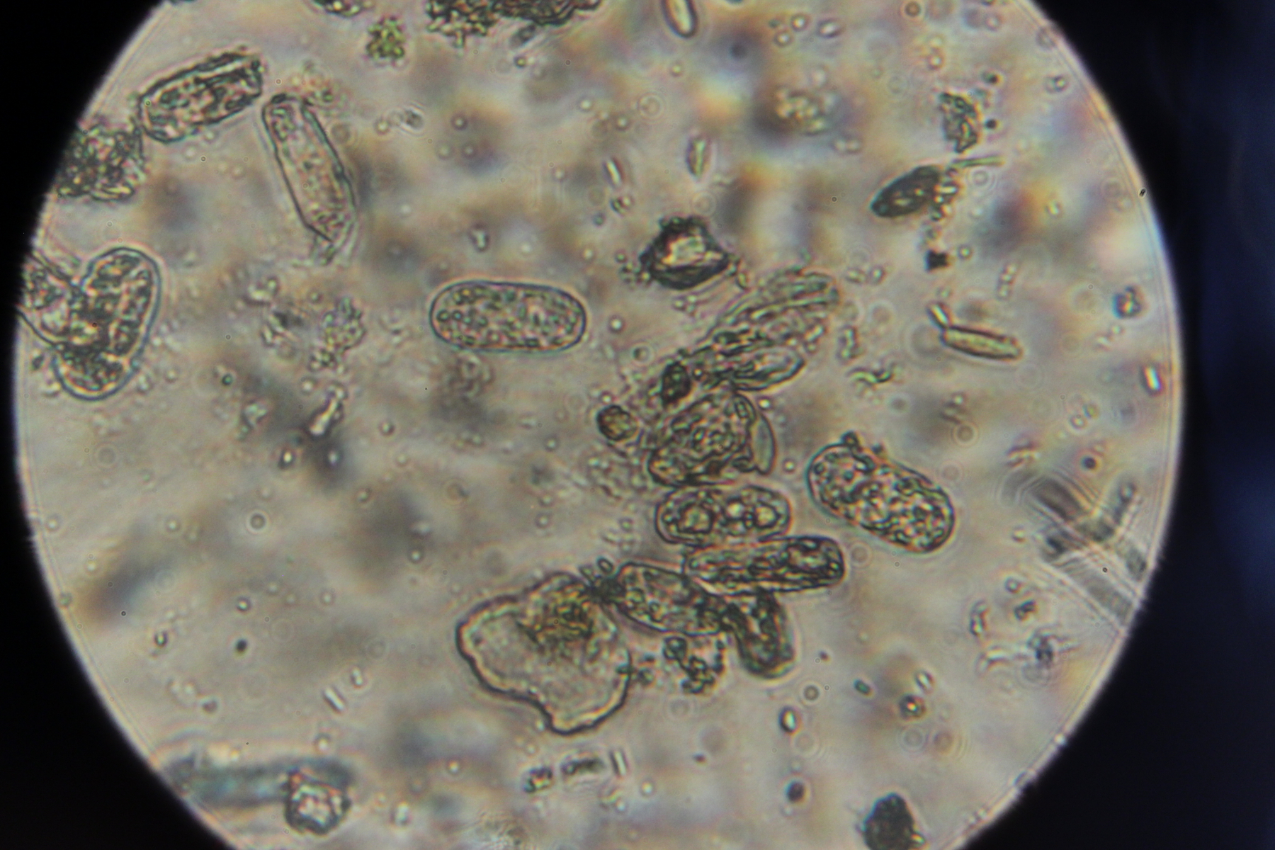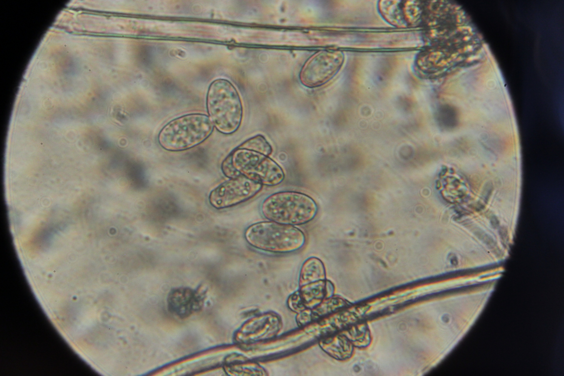 5. Phellinus sp. Im Mikroskop gab es leider nur diese Ansammlung von Hyphenstückchen zu bewundern.