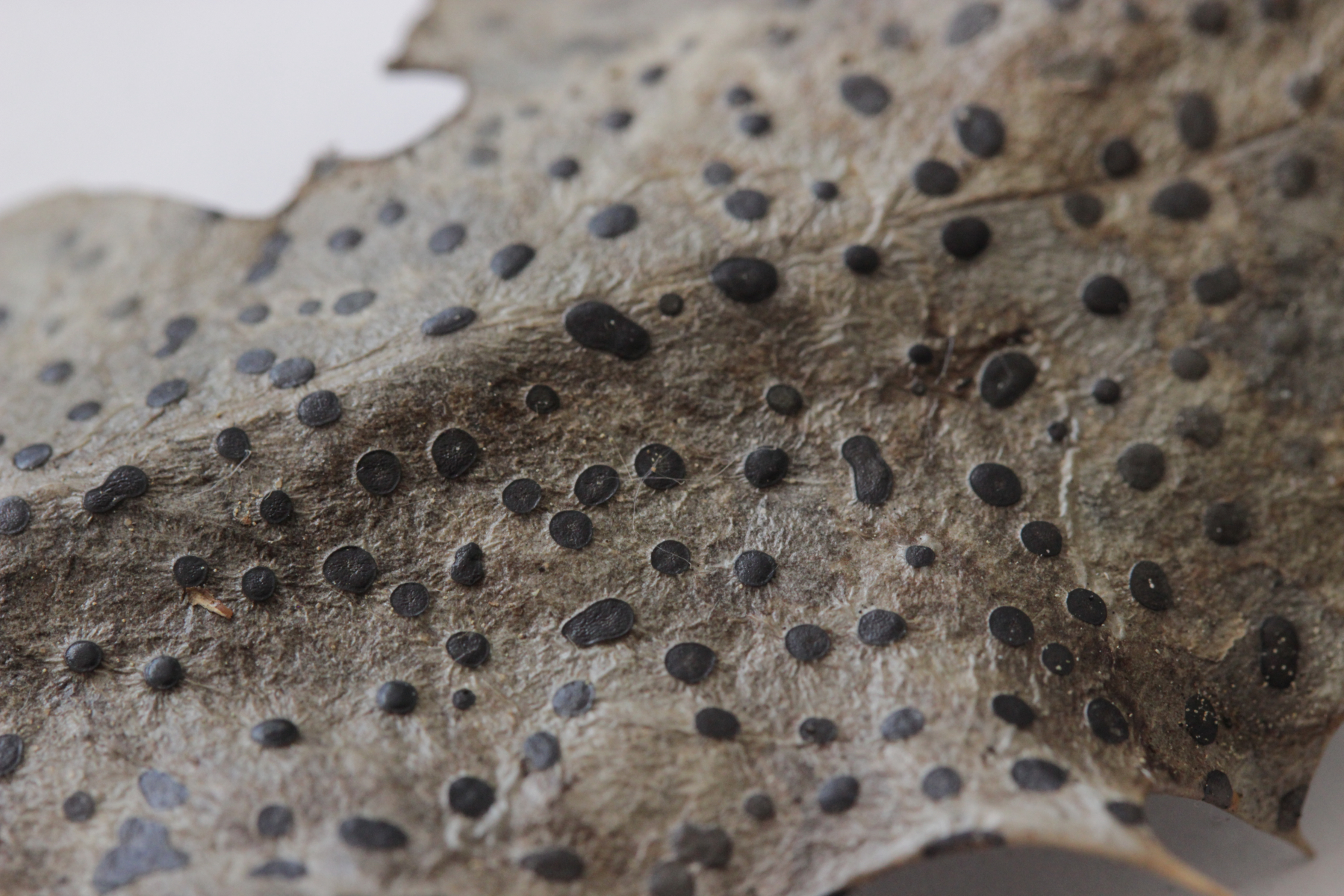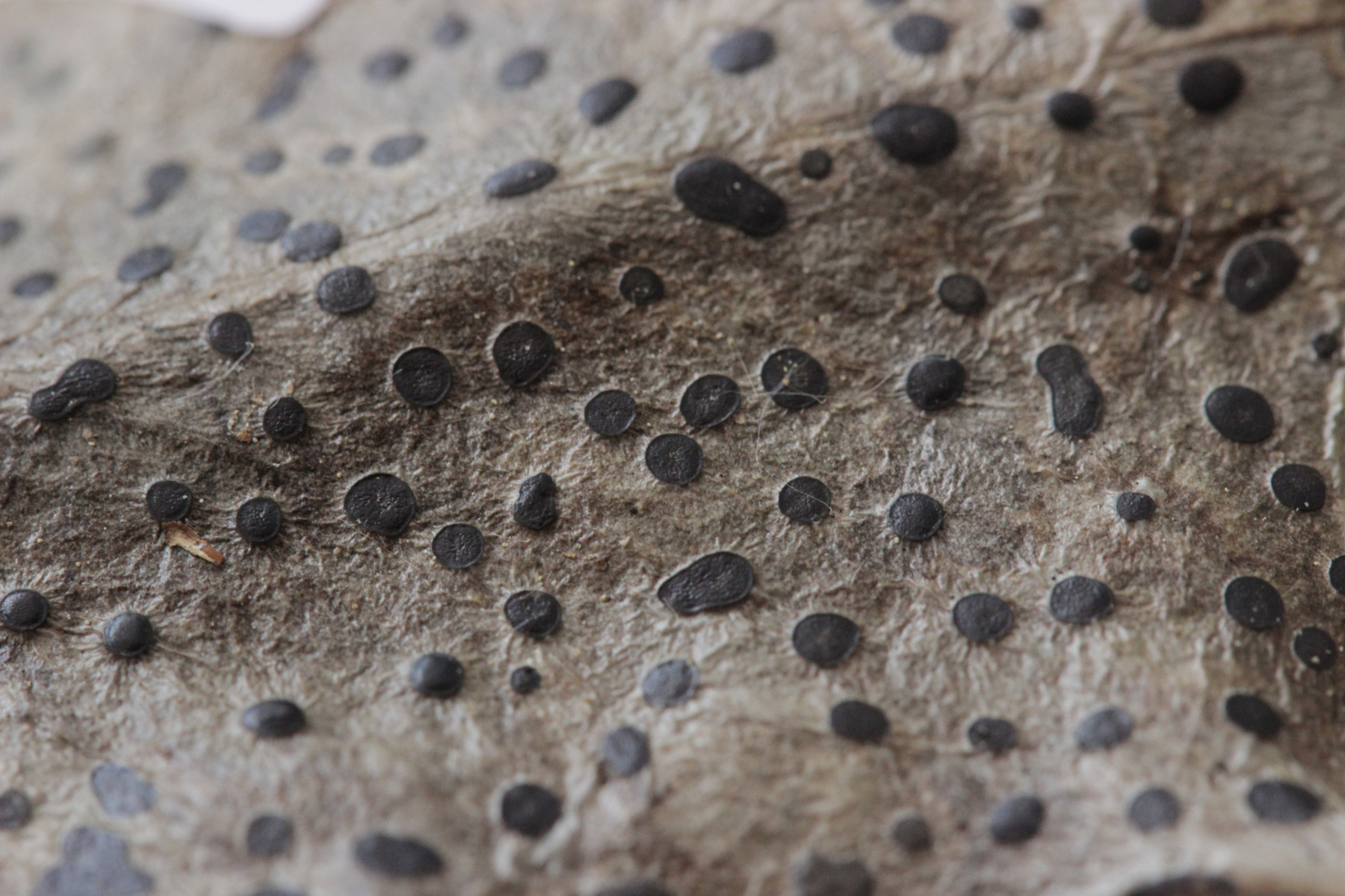 14. Unbekannte Anamorphe auf Acer pseudoplatanus. Könnte es eventuell Melasmia acerina (Rhytisma acerinum Anamorphe) sein?