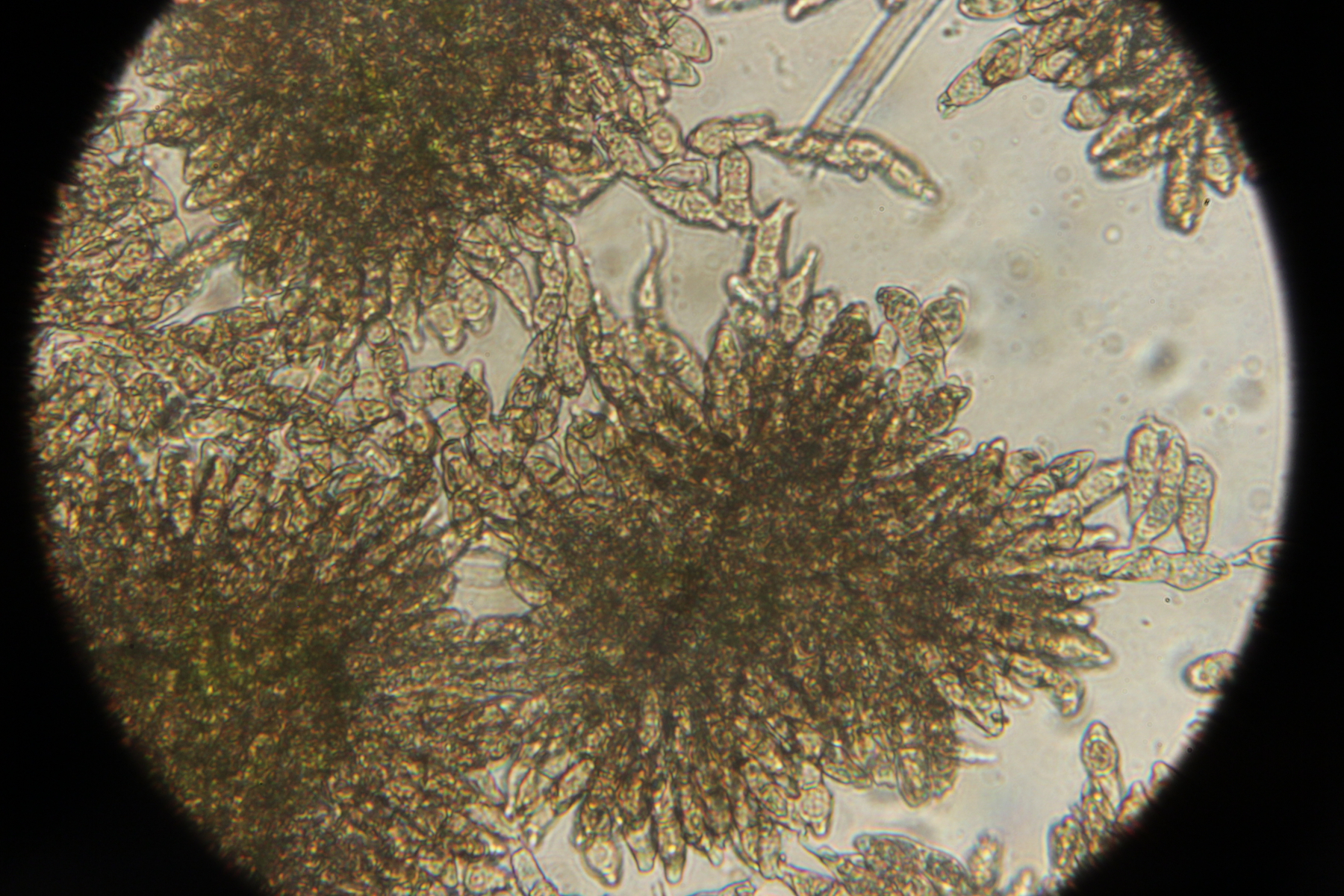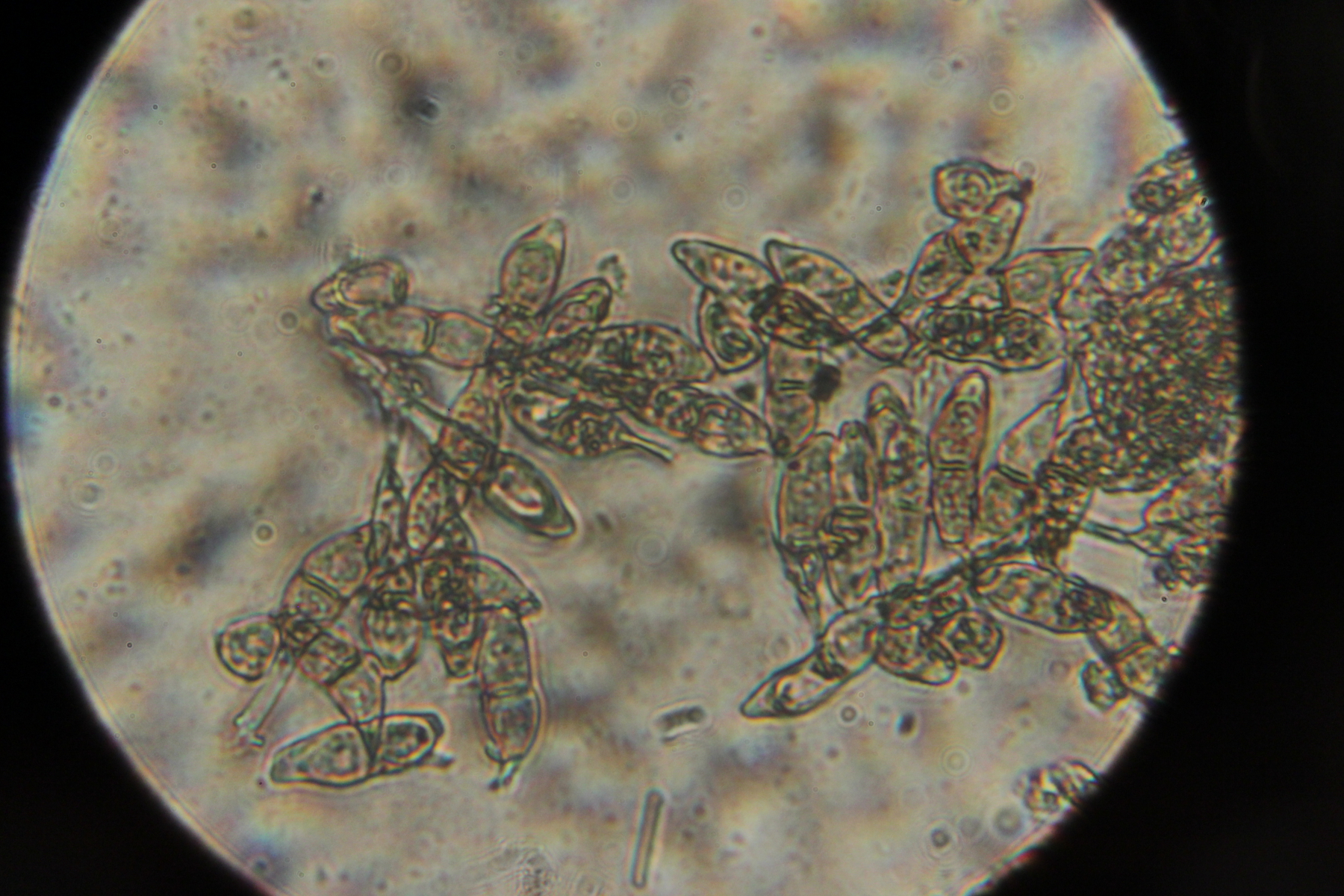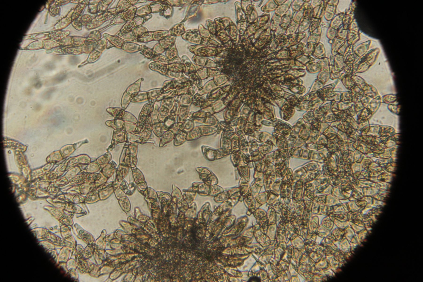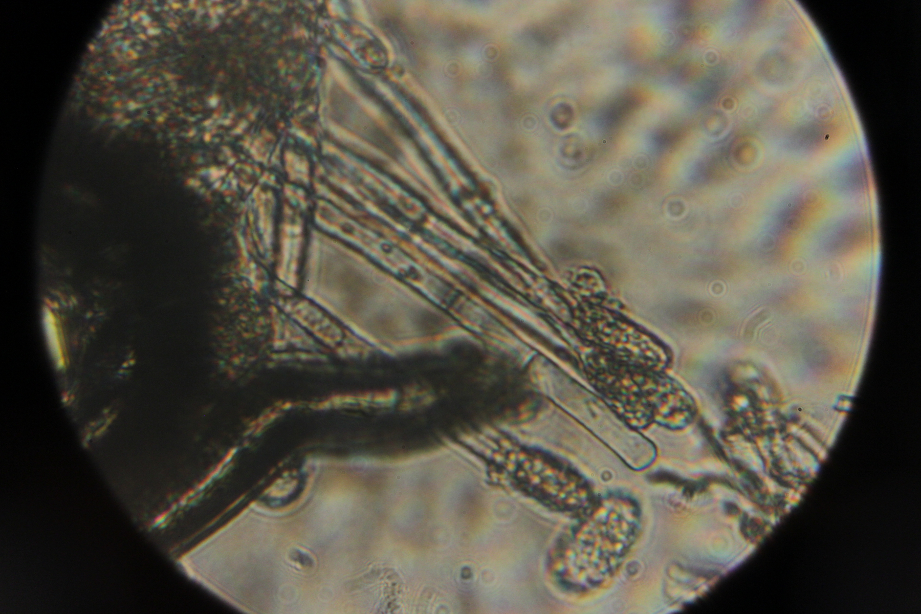 5. Phellinus sp. Im Mikroskop gab es leider nur diese Ansammlung von Hyphenstückchen zu bewundern.