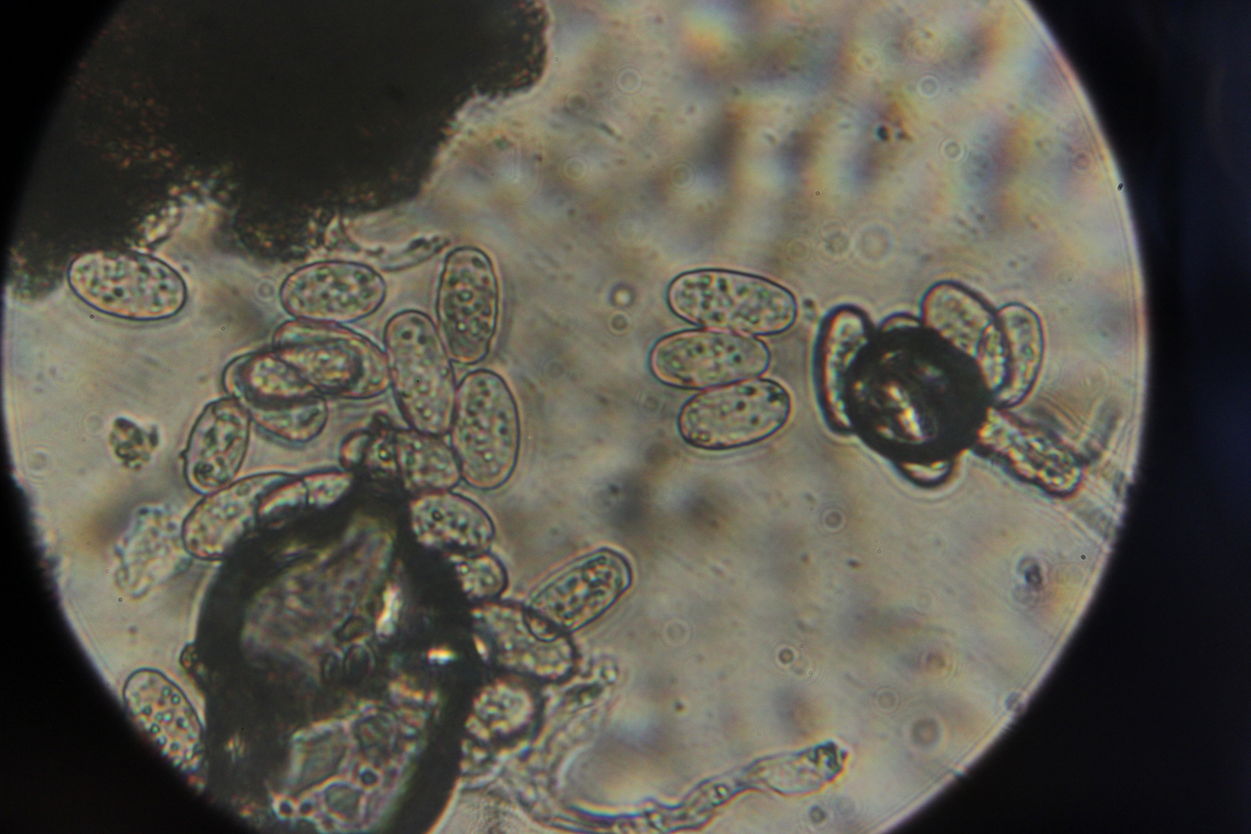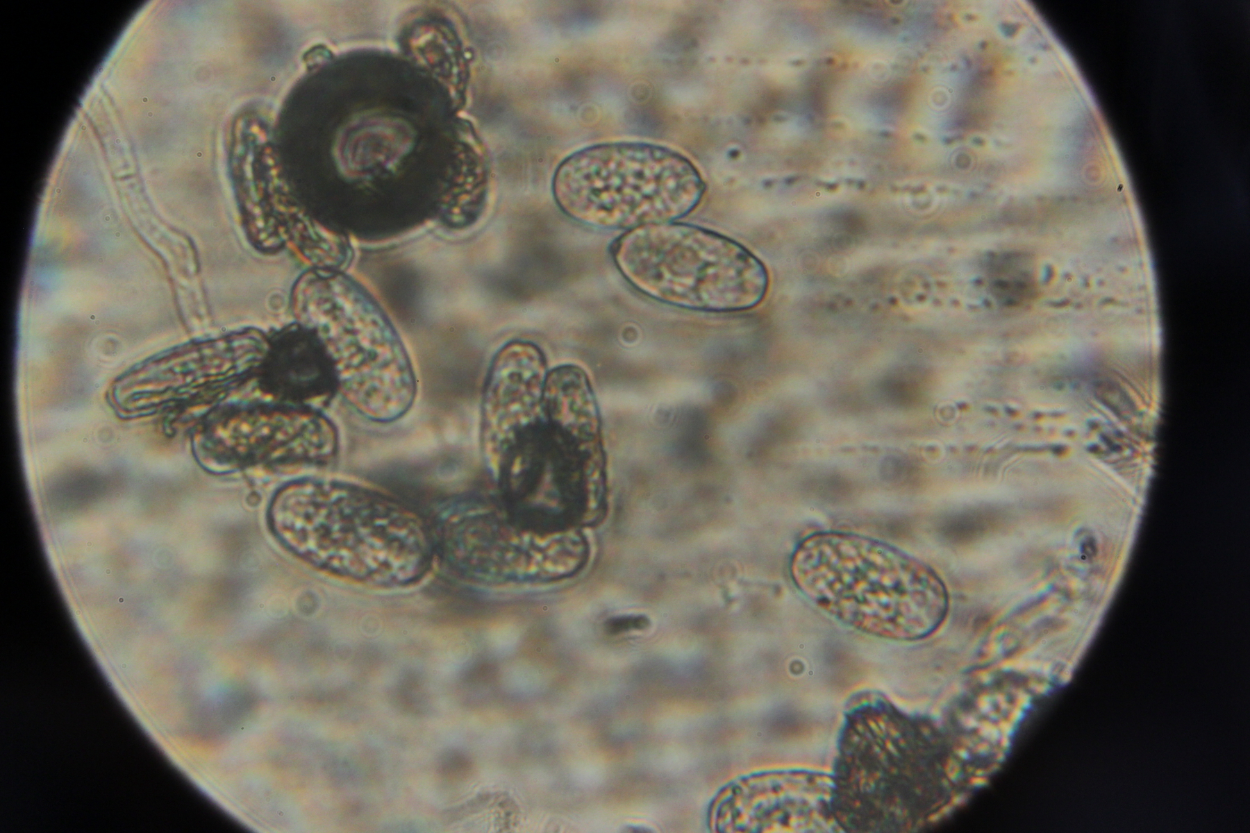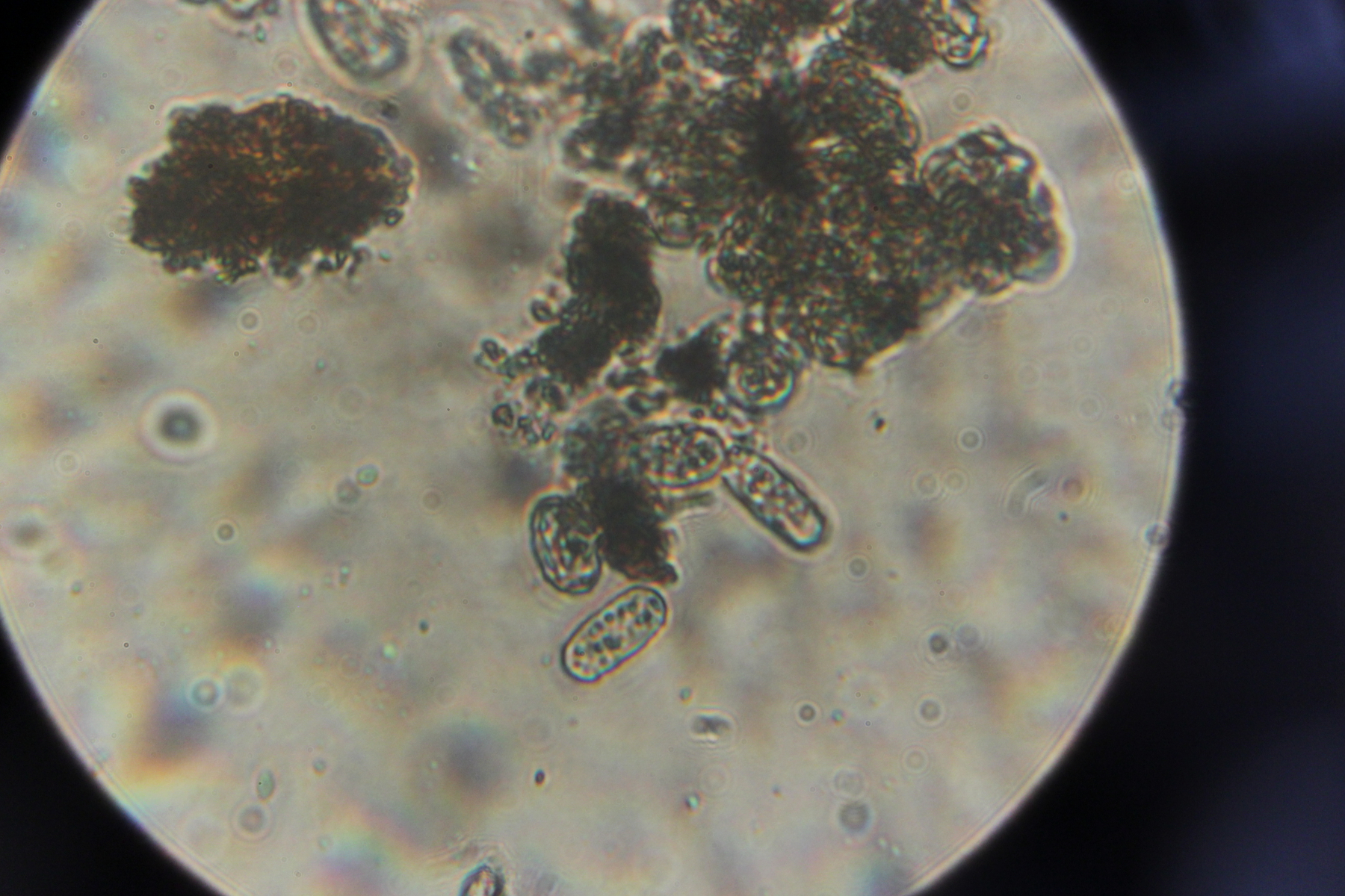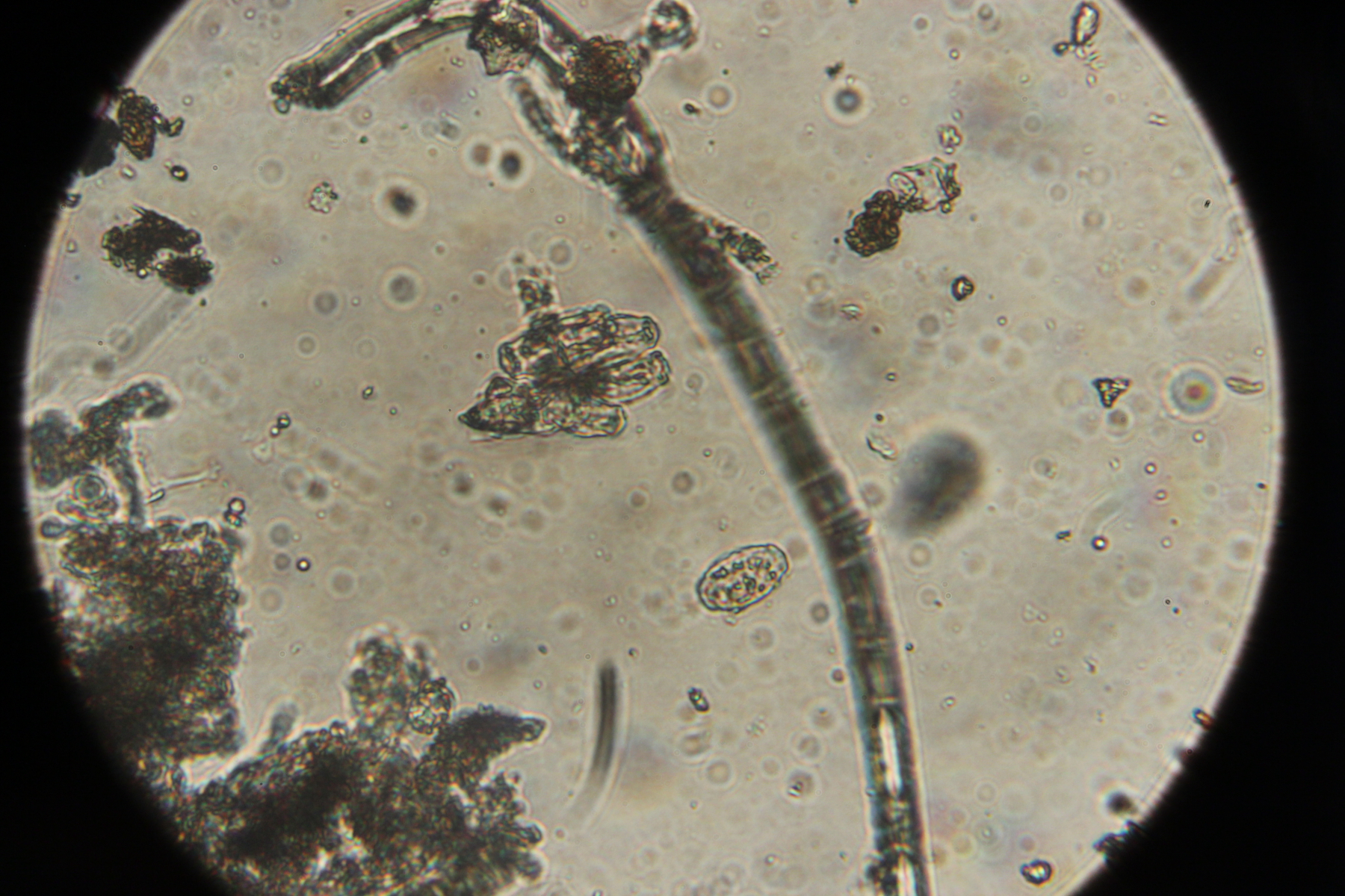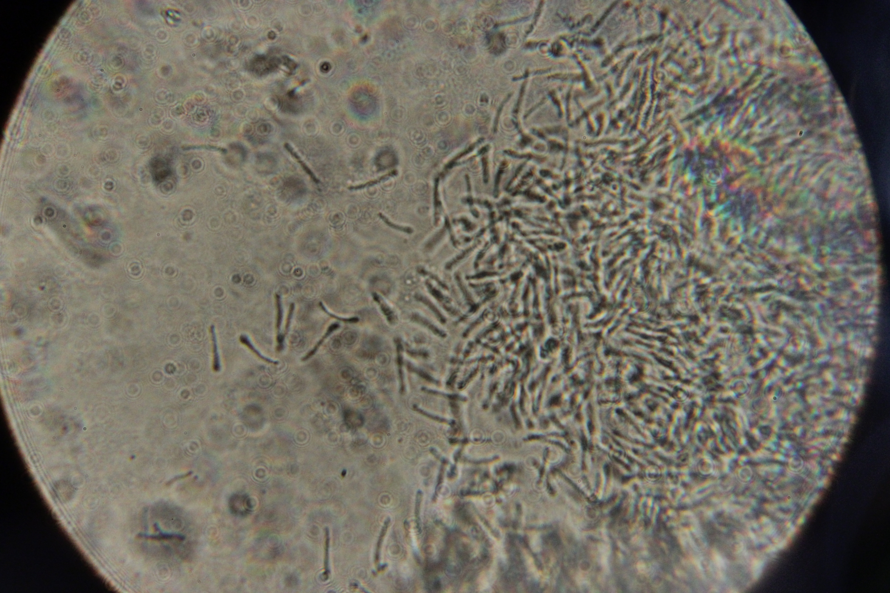 5. Phellinus sp. Im Mikroskop gab es leider nur diese Ansammlung von Hyphenstückchen zu bewundern.