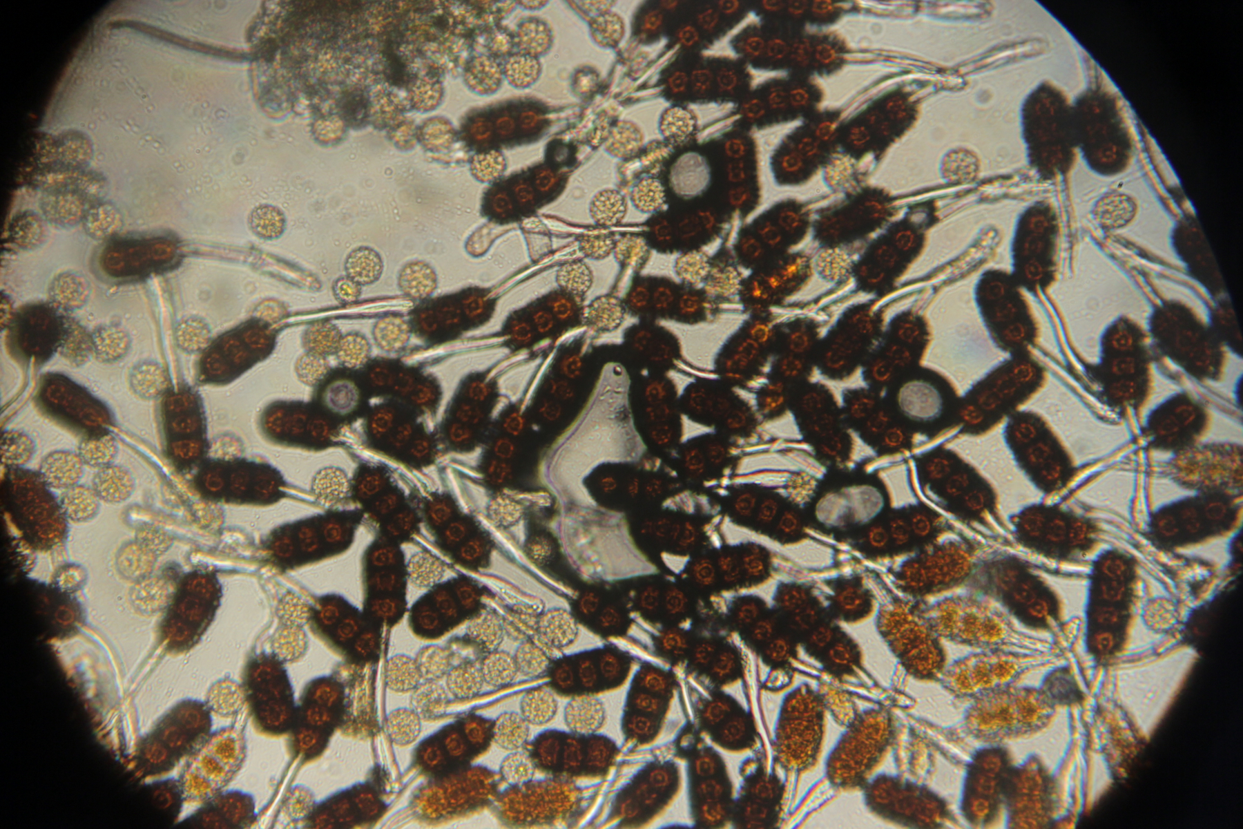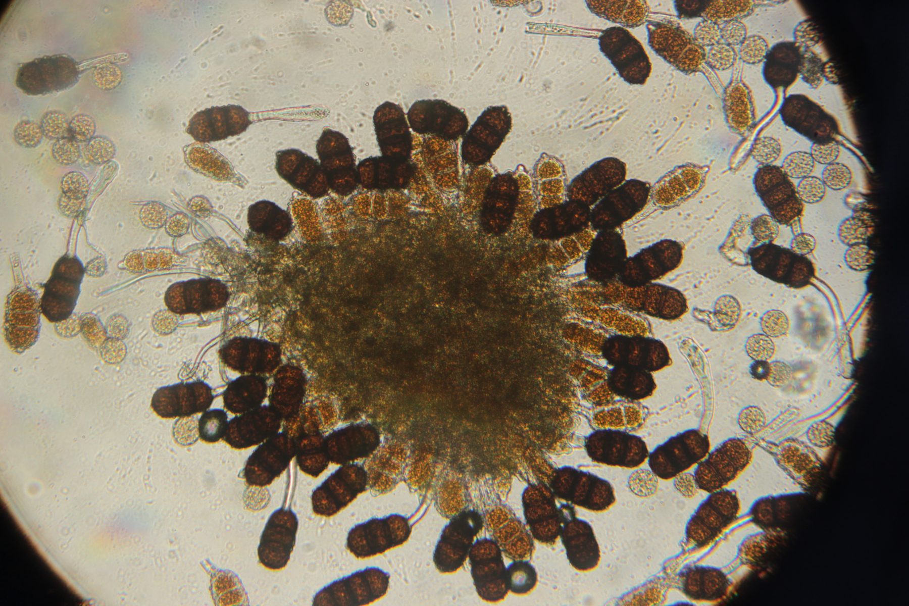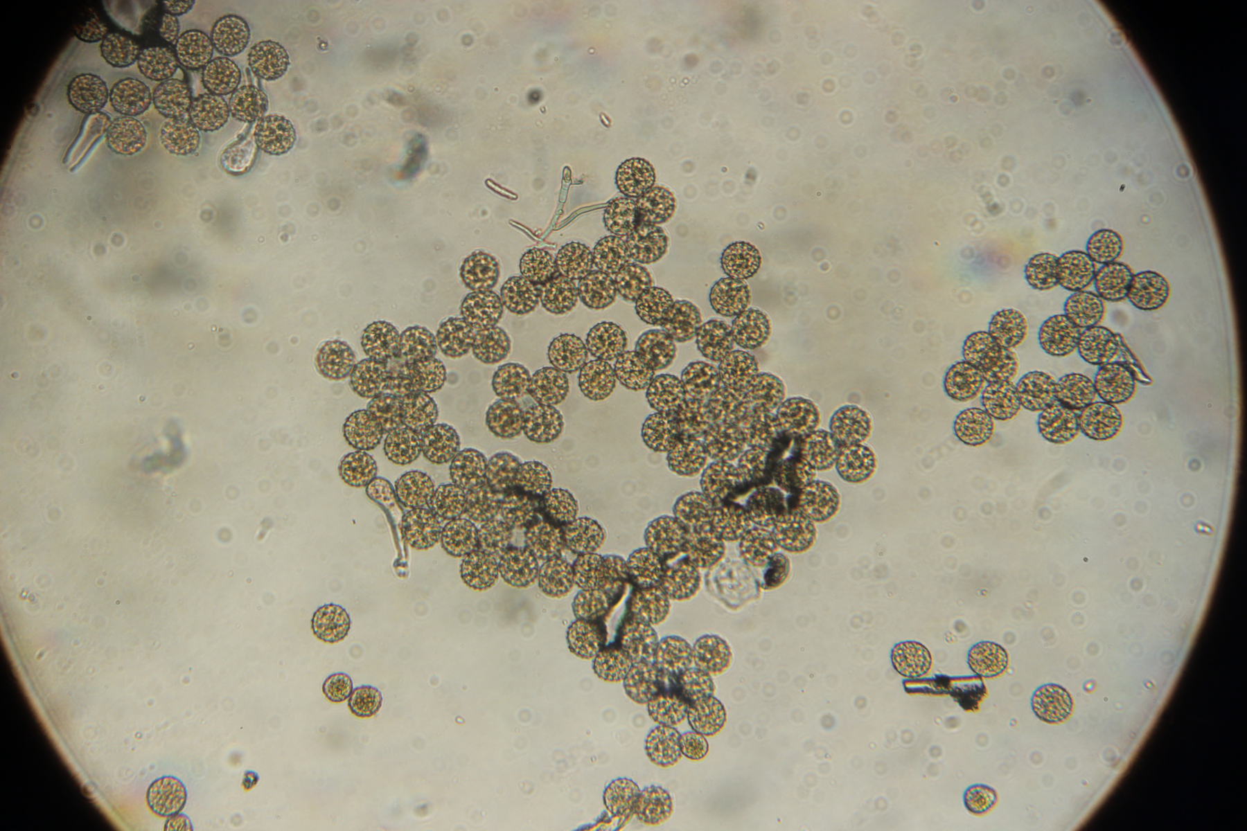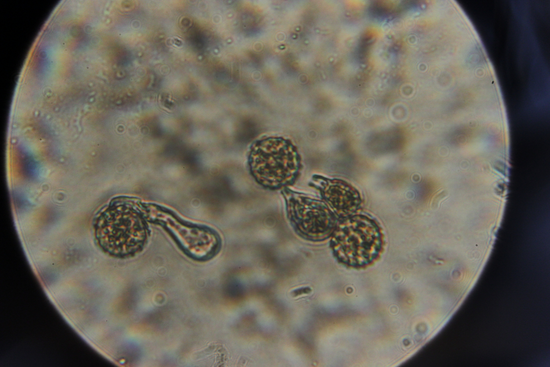 5. Phellinus sp. Im Mikroskop gab es leider nur diese Ansammlung von Hyphenstückchen zu bewundern.