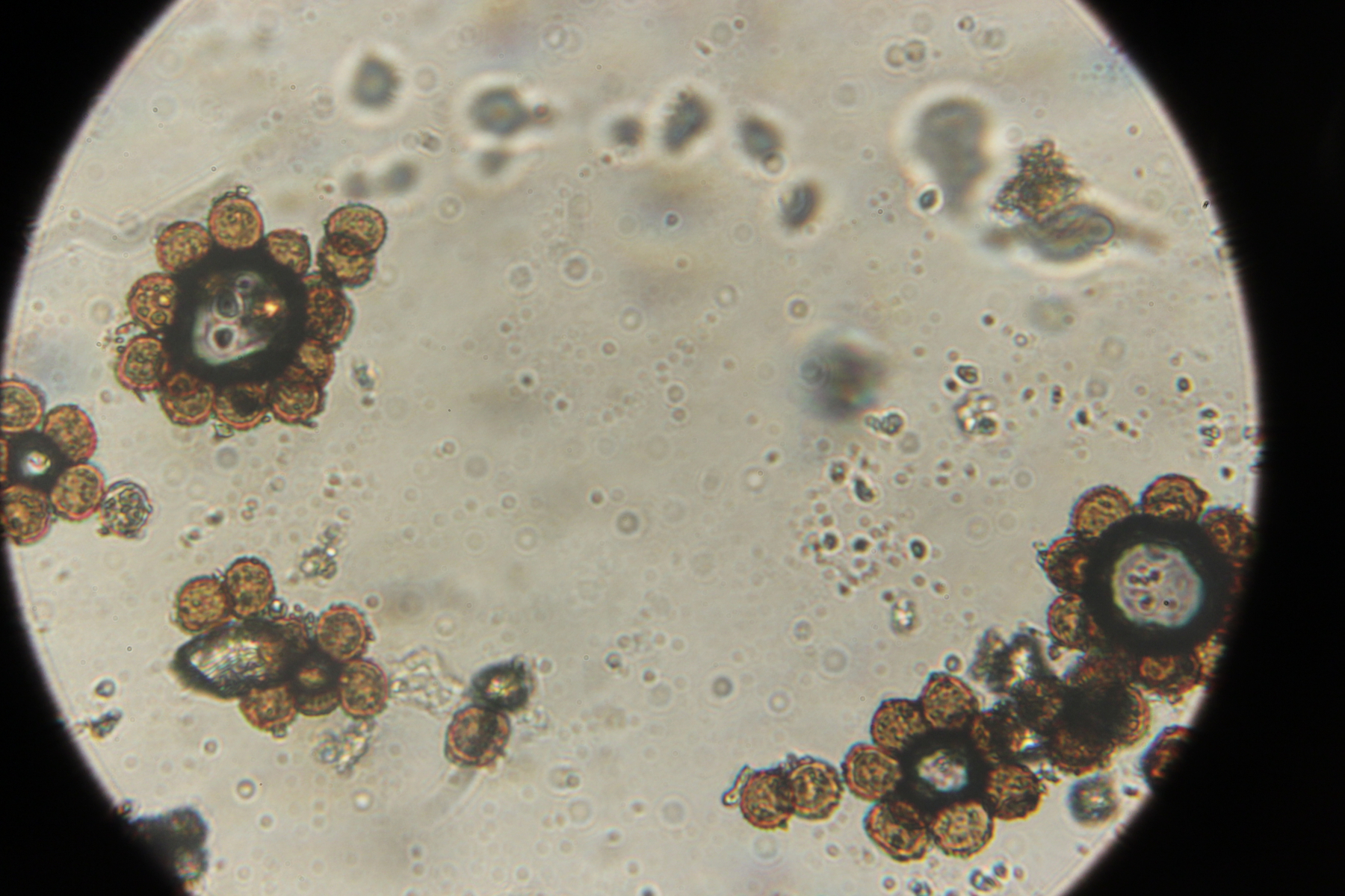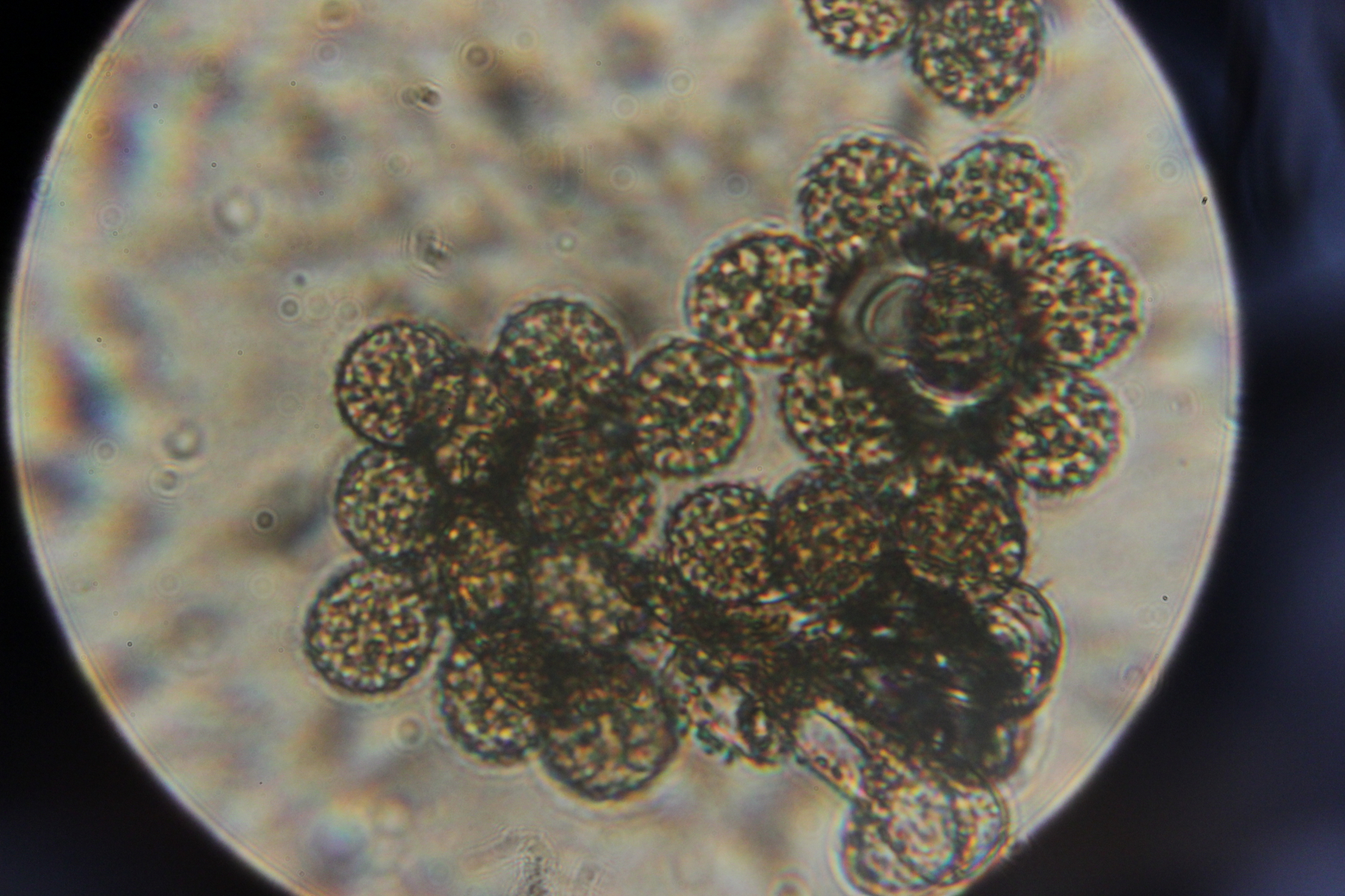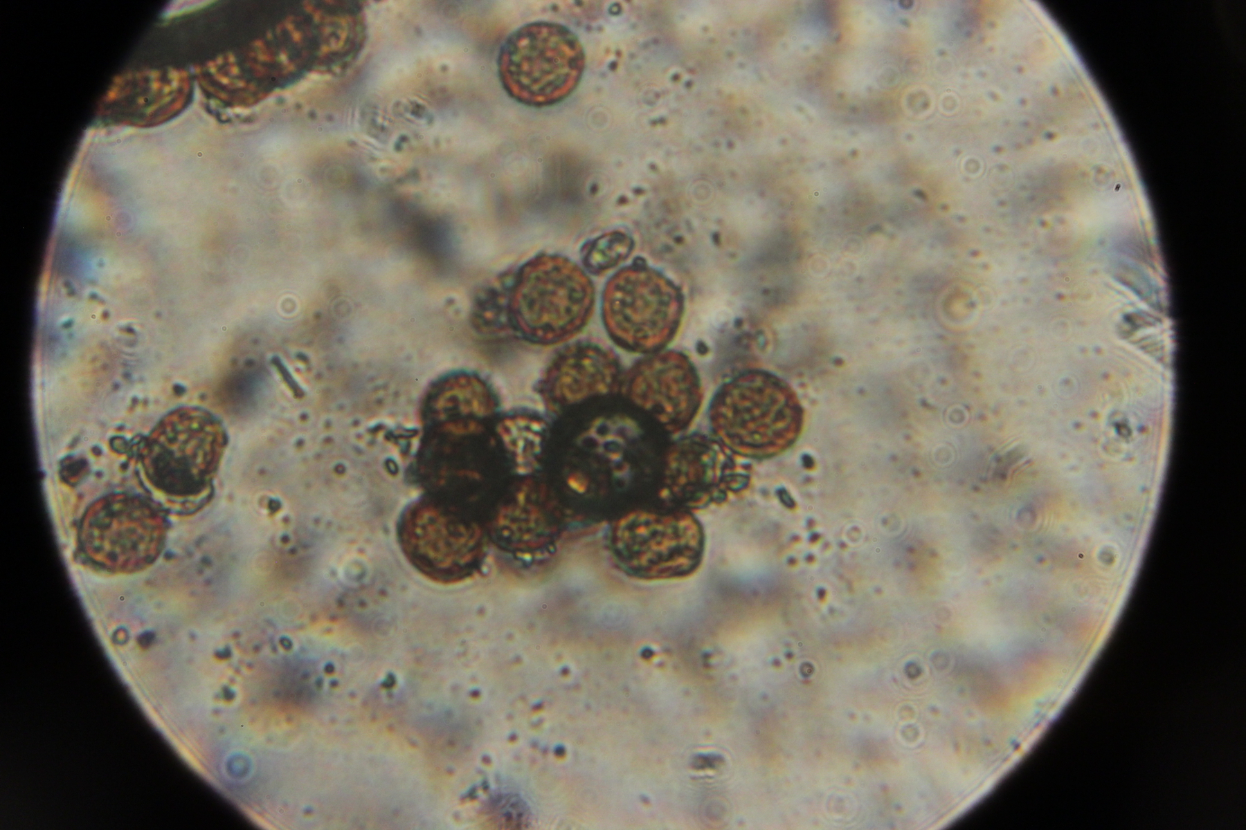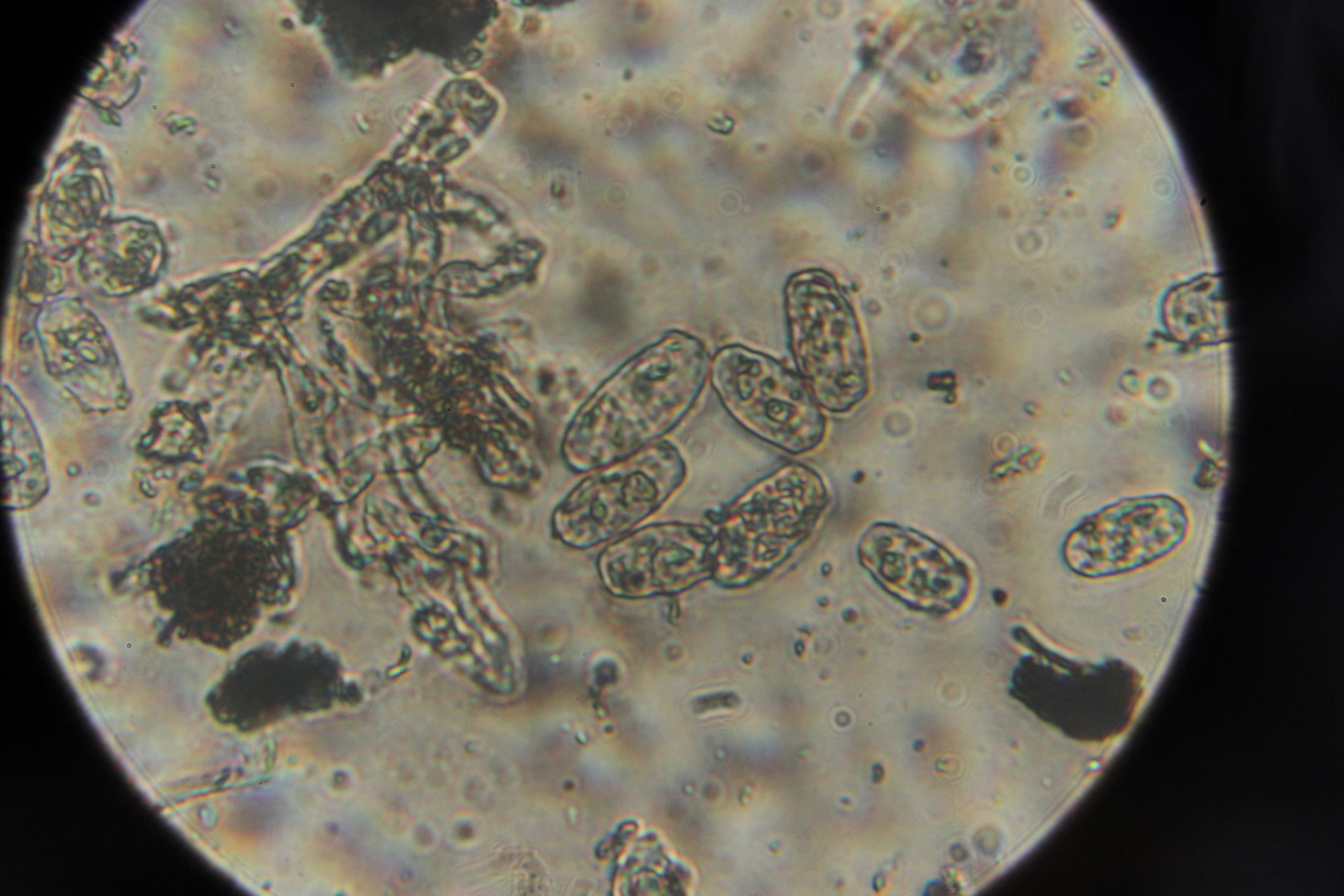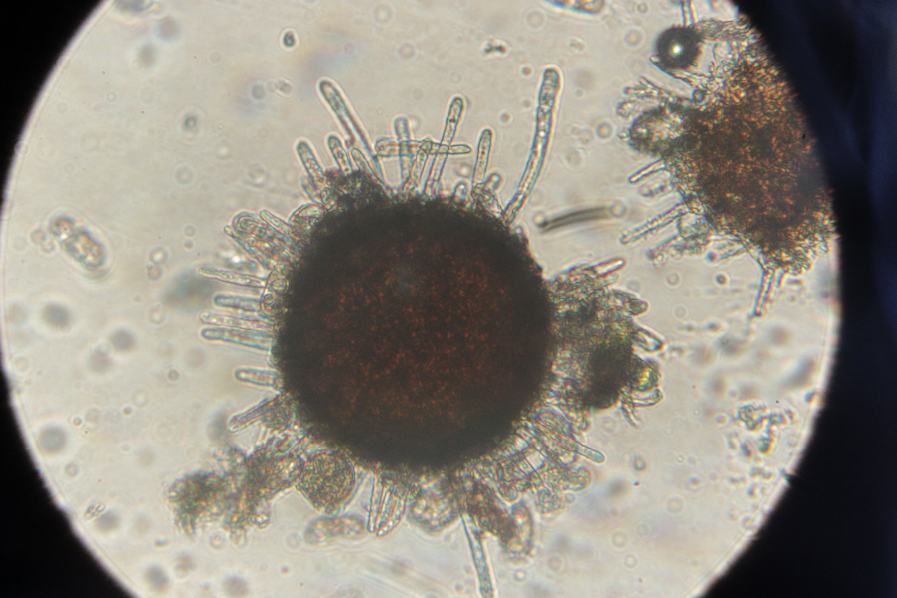 5. Phellinus sp. Im Mikroskop gab es leider nur diese Ansammlung von Hyphenstückchen zu bewundern.