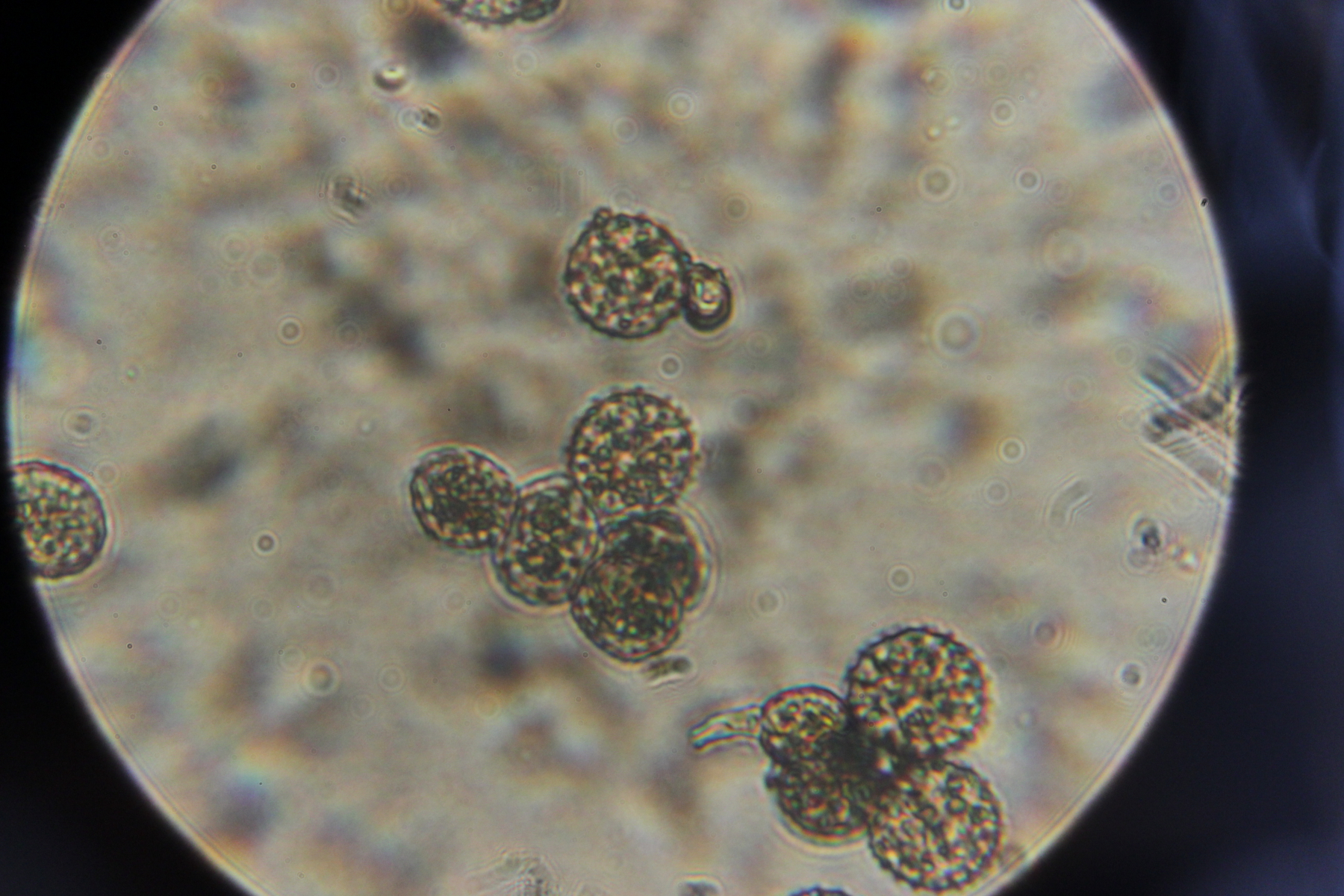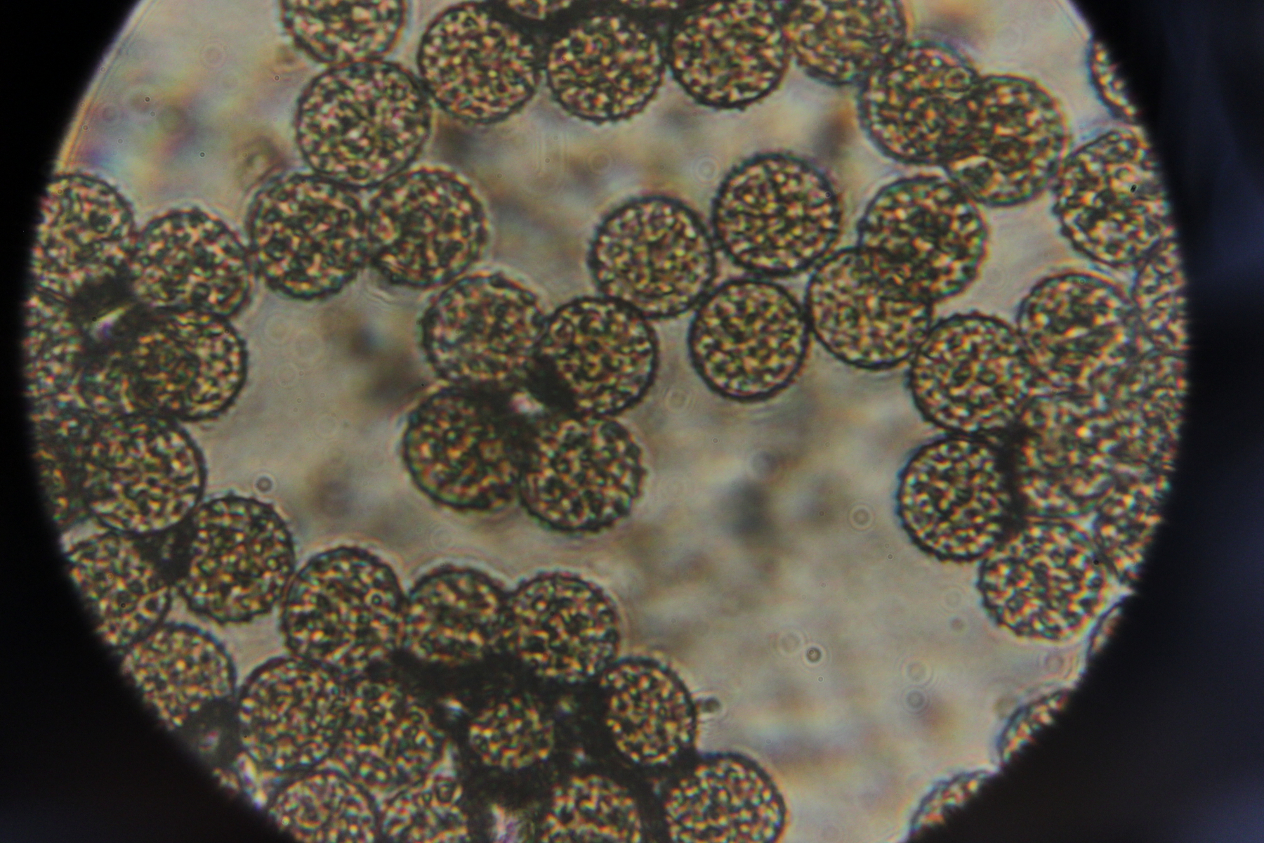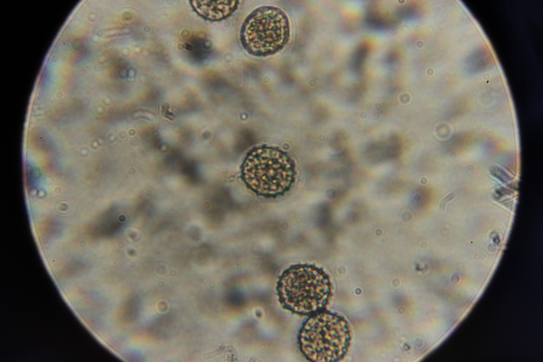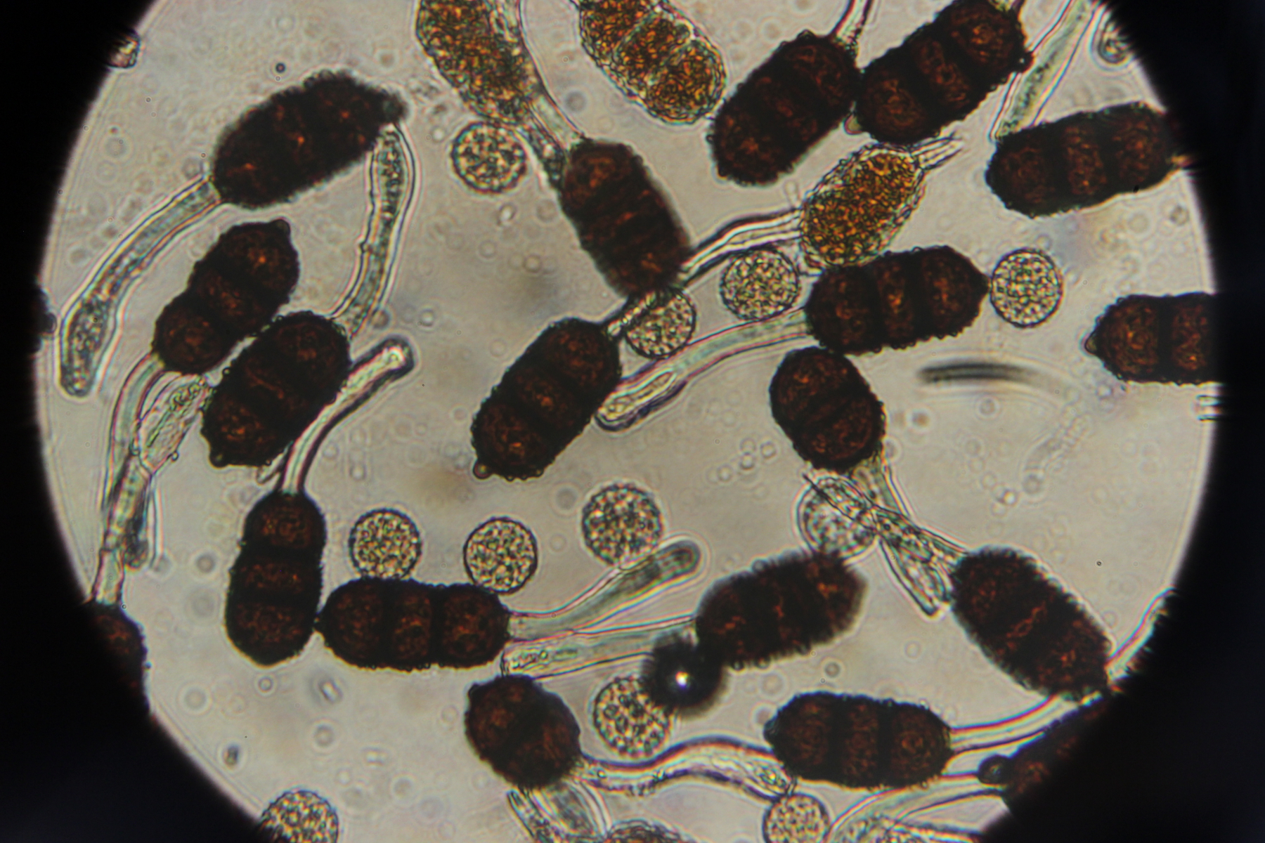 5. Phellinus sp. Im Mikroskop gab es leider nur diese Ansammlung von Hyphenstückchen zu bewundern.