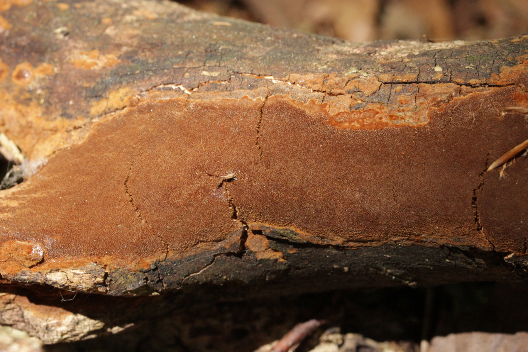Interessant könnten bei solchen Funden auch die etwas heller rostrot gefärbten, flaumigen, porenlosen Bereiche der Ränder sein. Da hast du kein Hymenium, die Skeletthyphen sind etwass lockerer und Setae hast du da auch. Die sind dann auch wichtig, um die Arten gegeneinander abzugrenzen (Länge der Setae).