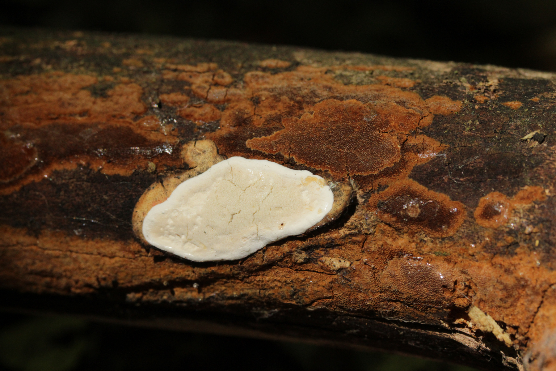 Der Phellinus wird in die Gruppe resupinater Arten um Phellinus ferrugineus gehören. Feuerschwämme sind erzundankbar zu mikroskopieren, das ist eigentlich immer ein enormes Gefuddel.
