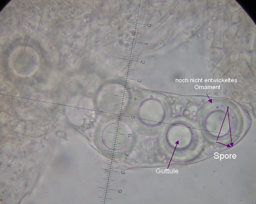 In der letzten Knolle fand ich dann ein paar Asci mit Sporen (22-24µ ohne Ornament), die meist uniseriat im Ascus angeordnet waren.