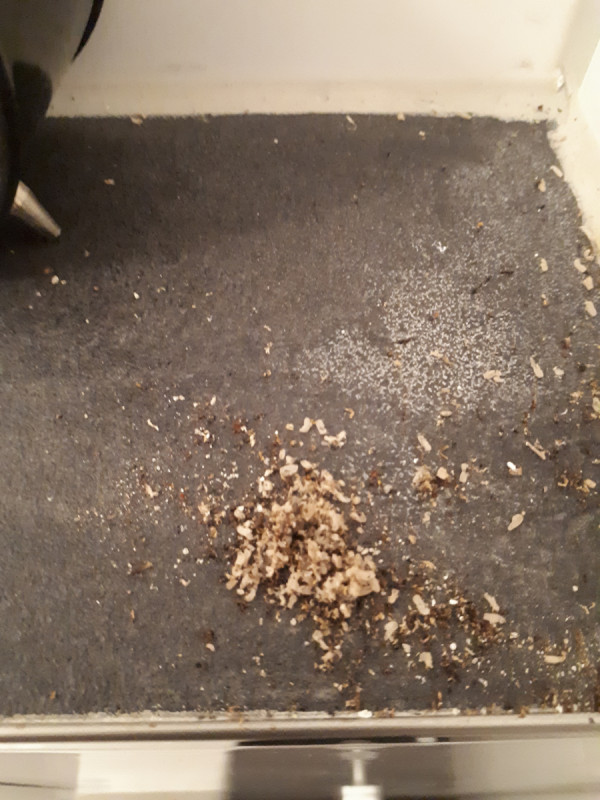 Einen Verdacht auf Mäuse möchte ich aber aussprechen. Vom Bild her bekomme ich den Eindruck da würden auch schwarze längliche Reiskörner liegen. So sehen nämlich Mäuseküttel aus.