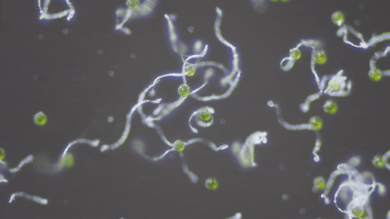 Es handelt sich um Volvox aureus, eine meiner Lieblingsalgen. Die Algen finden sich immer wieder mal in Teichen. Die Aufnahmen entstanden im Dunkelfeld. Bin mal gespannt, ob es mir gelingt, die Wesen selbst weiter in Kultur zu halten.