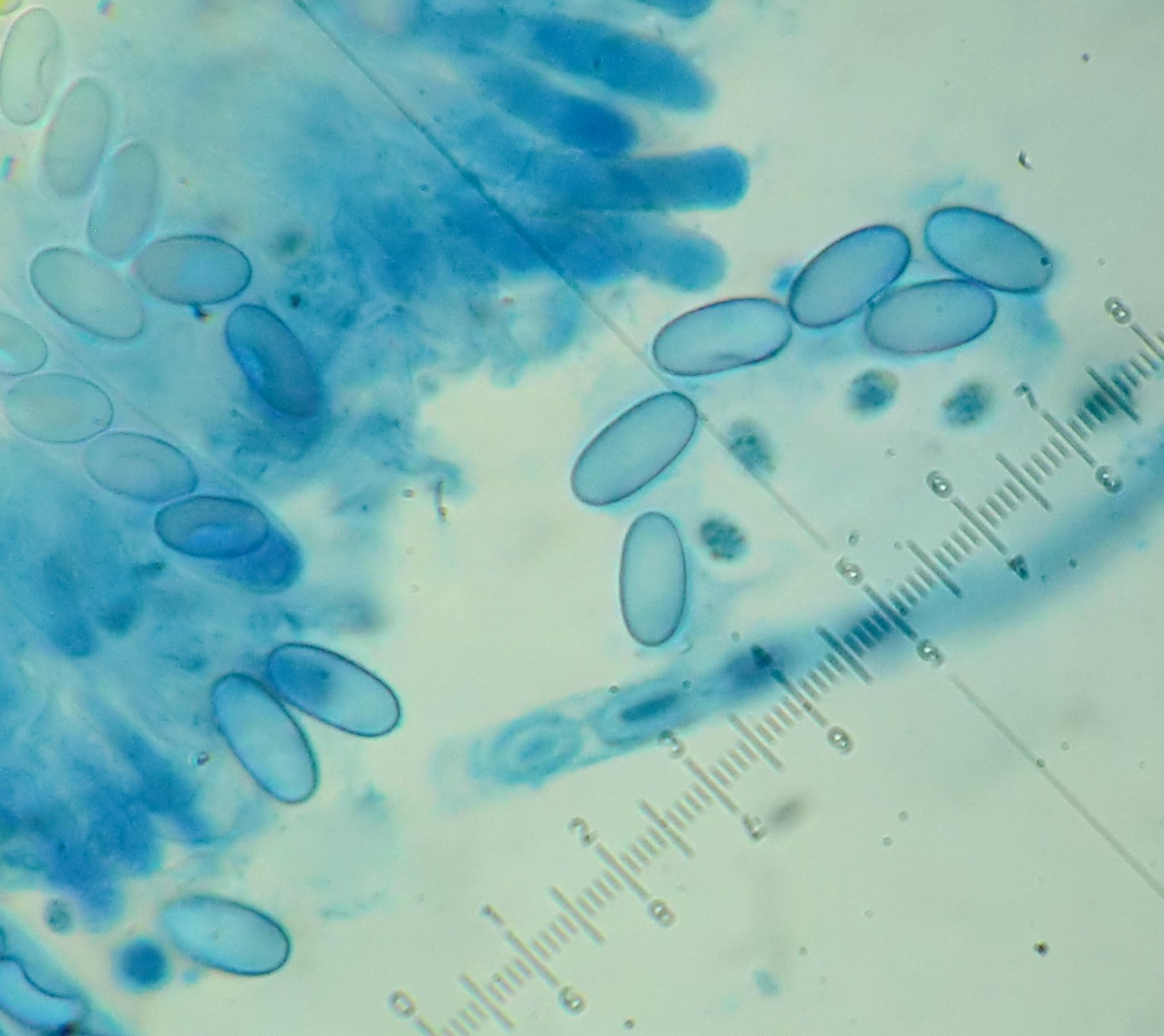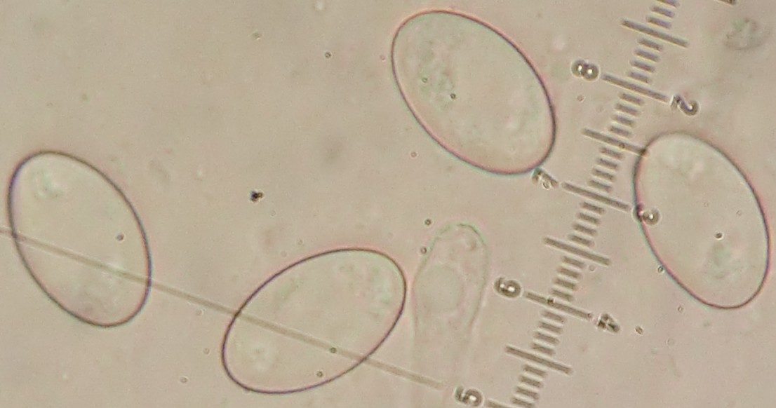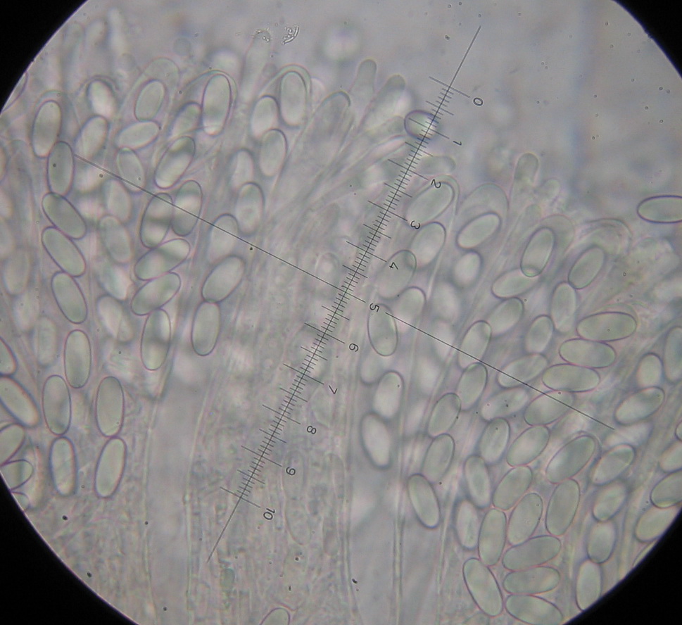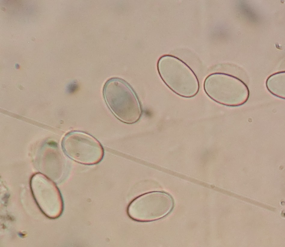 Sporen: elliptisch, hyalin, glatt und 10 - 14 x 5 - 6 µm groß. Mit Gelhülle.