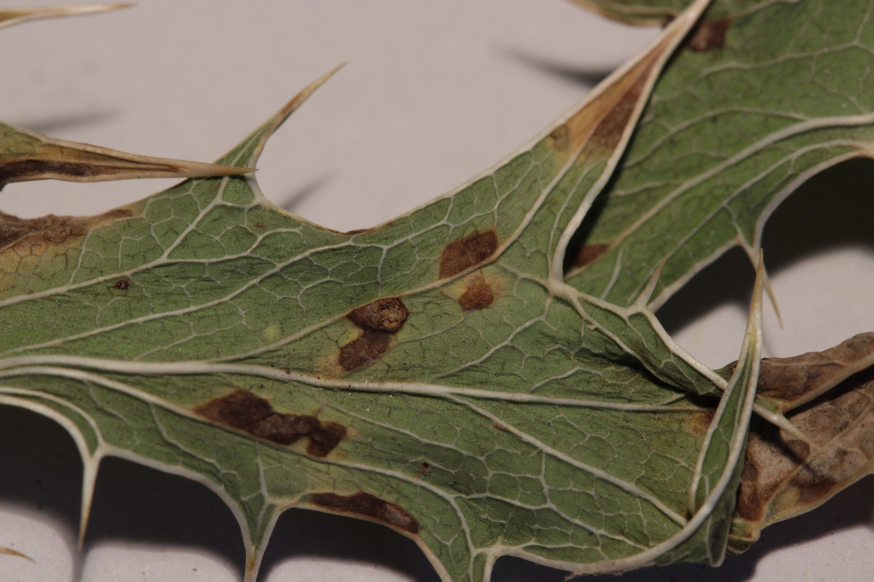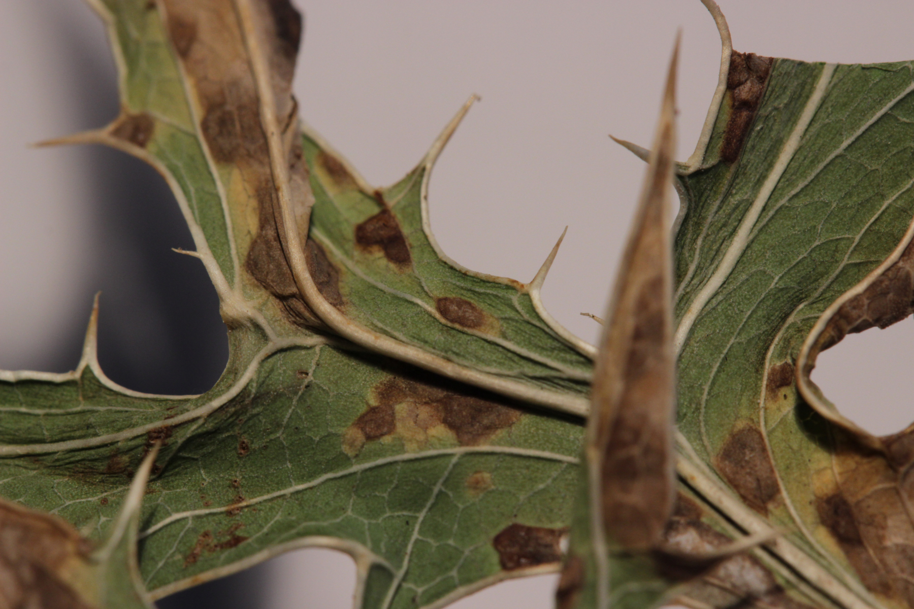 am letzten Samstag habe ich das schöne Wetter am Rhein genossen und dabei auf der Ölgangsinsel (die nebenbei bemerkt weder eine Insel ist, noch etwas mit Öl zu tun hat - hier ging man früher zum Aale fangen) jede Menge Feldmannstreu, Eryngium campestre gefunden. Der hatte auch dankenswerterweise kleine braune Flecken auf den Blättern, so daß ich mir das mal unterm dem Mikroskop genauer angeschaut habe. Und siehe da: Entyloma eryngii, der ganz nette Sporen hat, die in einer unregelmäßig geformten Hülle stecken EDIT: eine unregelmäßig dicke Wand haben: