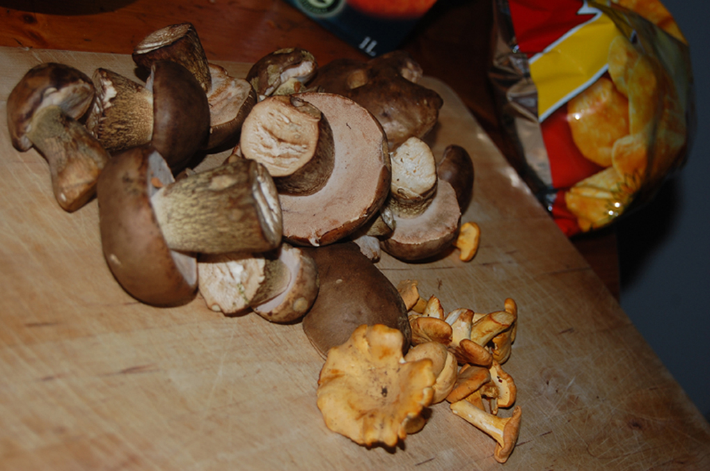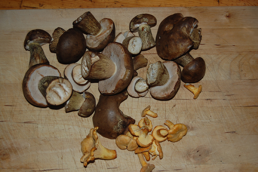 außer den schönen Pfifferlingen hast du hier wohl nur noch Gallenröhrlinge in deiner Sammlung. Sie sind an dem braunen Stielnetz und dem rosa Röhrenfutter gut zu erkennen.