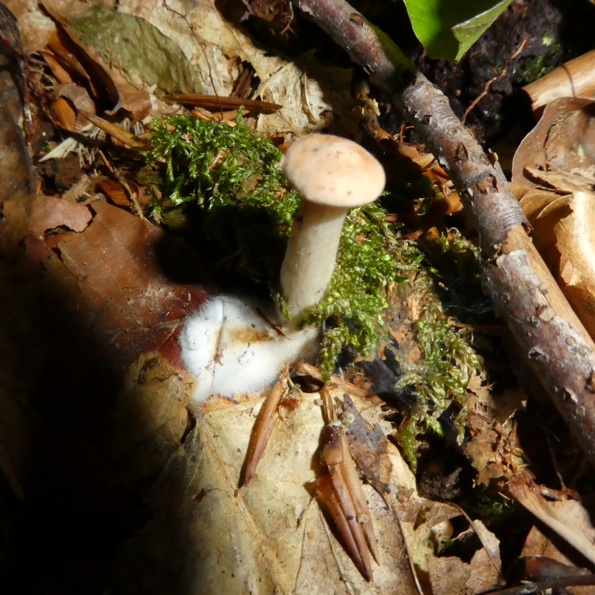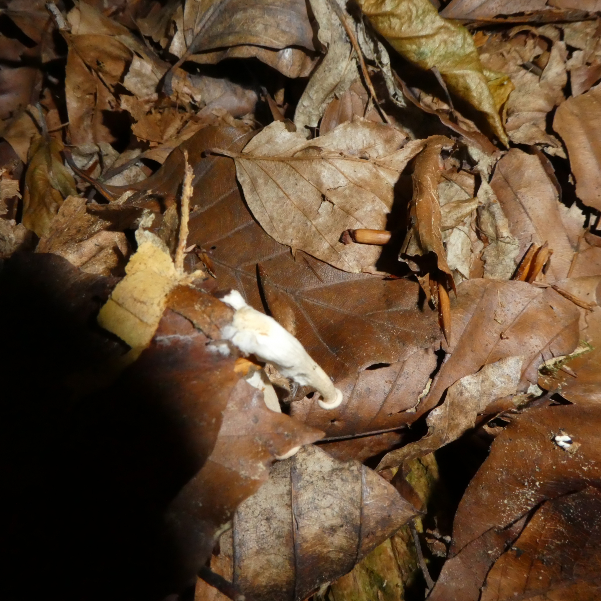 gestern fand ich kleine Pilzchen die, scheinbar, auf Buchenblätter wuchsen. Leider schaffe ich es nicht die zu bestimmen. Was ist das? Bzw. in welche Richtung könnte dies gehen?
