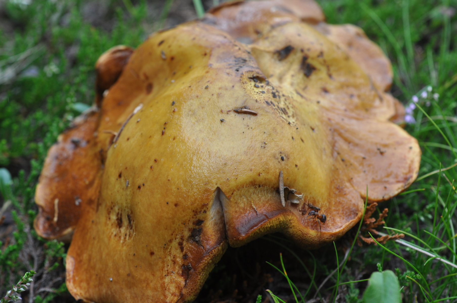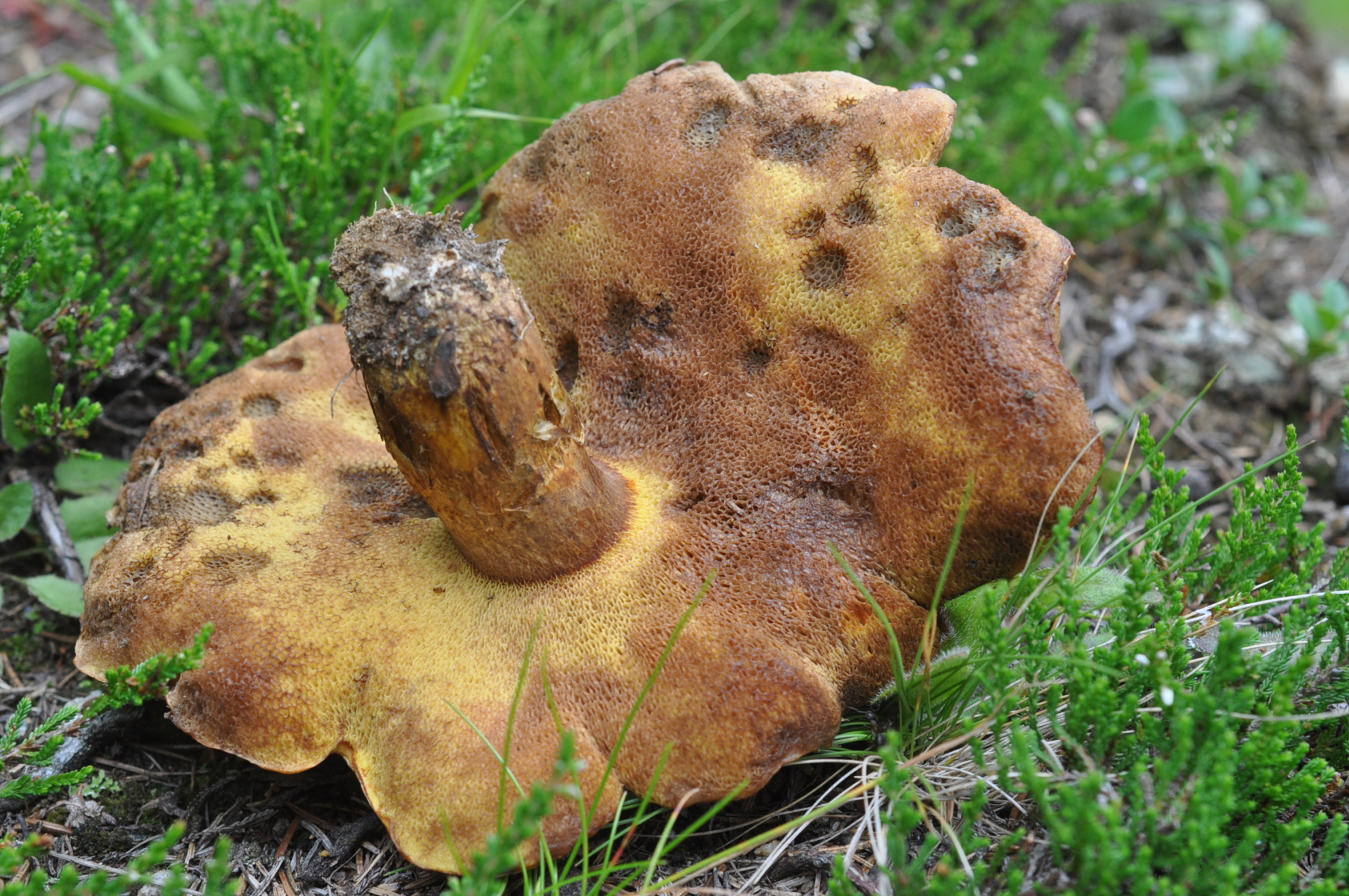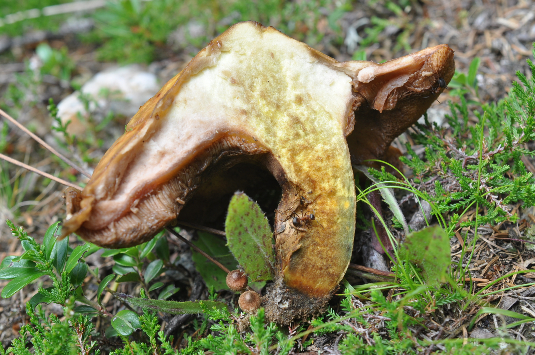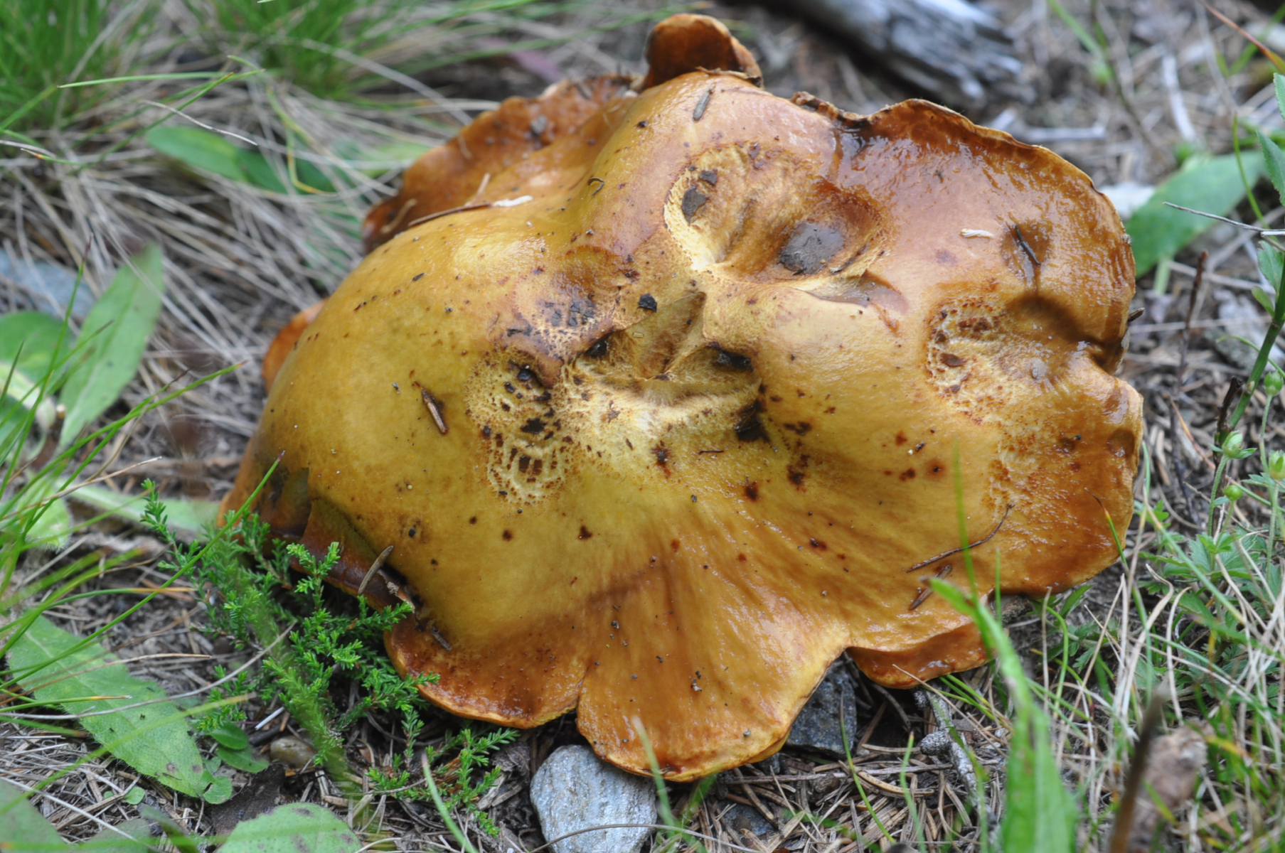 Fundort Rauriser Tal (AT) ca. 1600 m ü NHN , Bäume in nähe . Fichte , Lärche , irgendwelche keine Laubbäume dünne bis 2 - 3 m höhe . Meine das auch Kiefern gibt weil habe ein paar Meter weiter ein Kiefern Steinpilz gefunden .