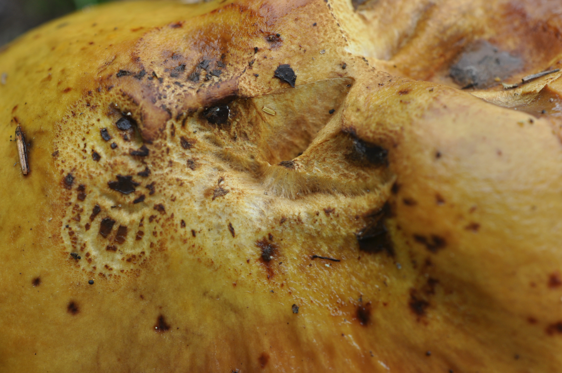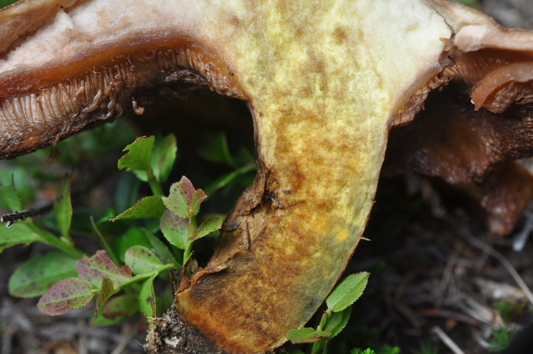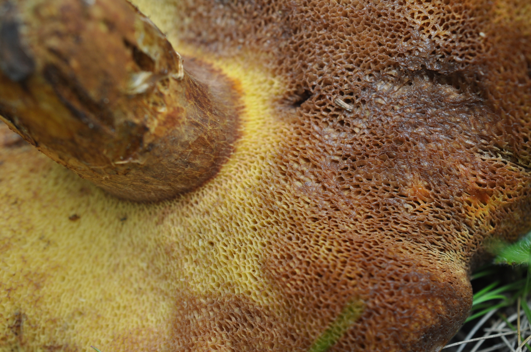 Röhrenboden Gelb . Fruchtkörper Fleisch und auch unten Huthaut Fleisch KEINE VERFÄRBUNG aber :