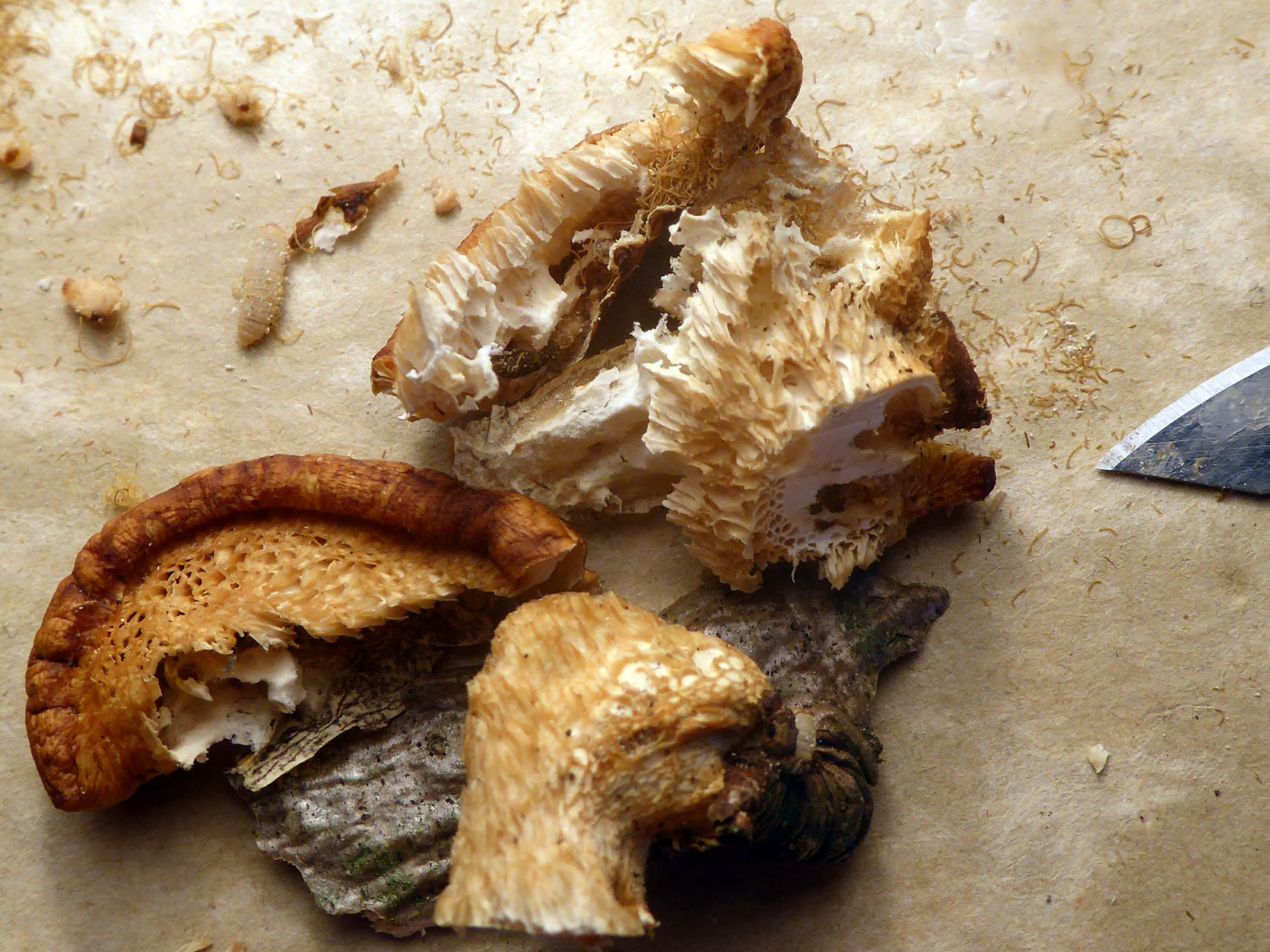 Kleiner Wink am Rande: Polyporus tuberaster ist die weichfleischigere Art und viel attraktiver für allerlei Tierchen als Polyporus alveolaris. Ist ein wenig ähnlich wie bei Netzhexe und Flocki.