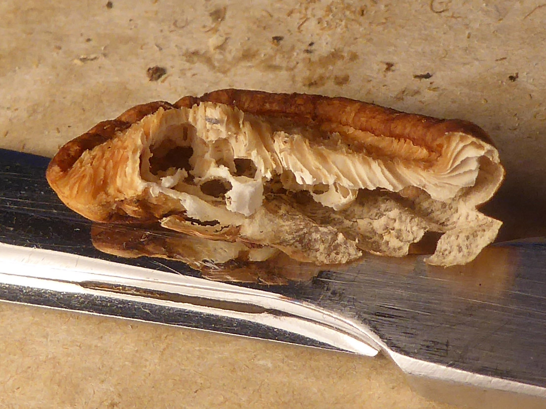 Alles hohl und zu Staub zerfallend. Allenfalls im Sitel ist noch ein winziger Rest Füllung. Reicht das, wenn ich versuche, alles Getier zu entfernen? Oder kommt es auf die Hutstruktur an? Ich kann mir grad nicht vorstellen, dem Christoph so eine Zumutung zu schicken ==14==14==14