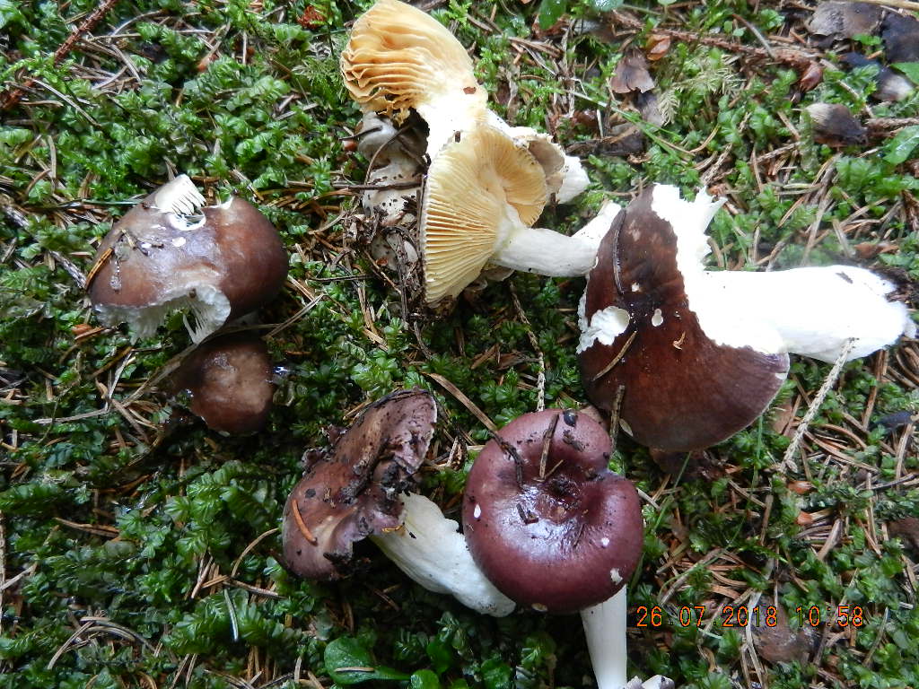 Nr. 3: Russula nauseosa (Geriefter Weichtäubling), könnte auch Russula laricina (Lärchentäubling) sein, die beiden sind makroskopisch schwer zu trennen; am Fundort wuchsen Fichten und Lärchen munter durcheinander