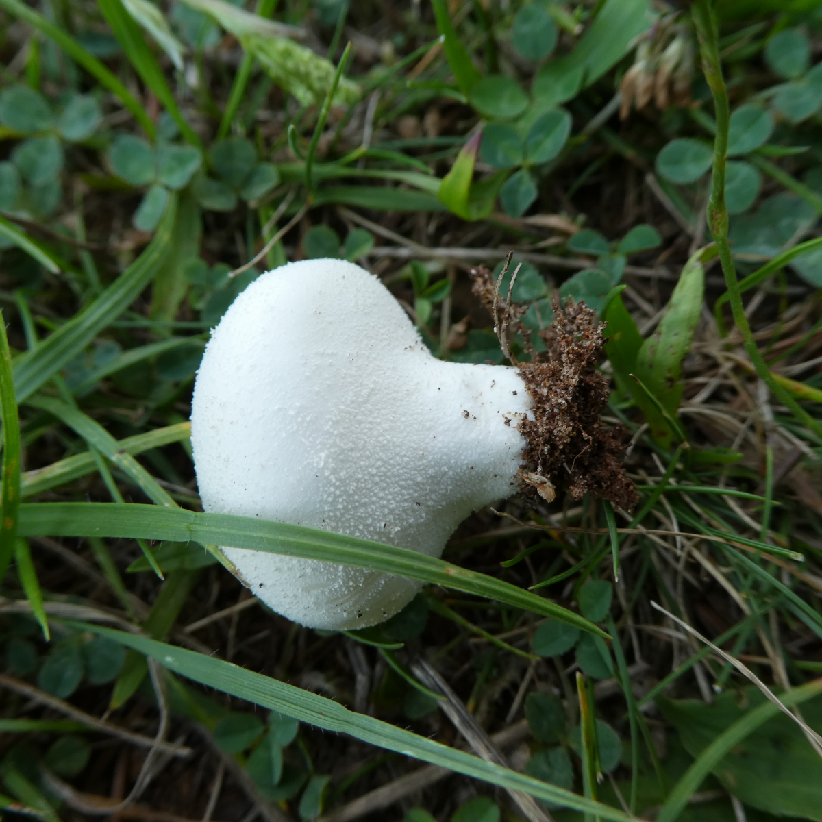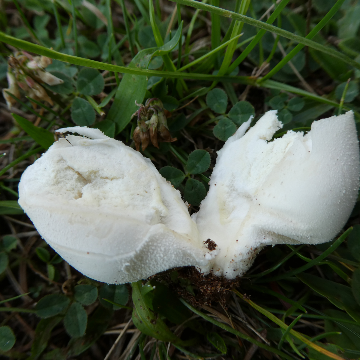 ich muß Uwe recht geben, denn das ist kein Bleigrauer Bovist. Der hat nie einen Stiel sondern ist kugelig. Die Oberfläche ist auch anders. Bei Bovisten und Stäublingen muß man immer eine gewisse Reife abwarten. damit man sieht wie die Fruchtschicht (Gleba) und die sterilen Teile aussehen. Häufig muß man auch mikroskopieren, sich das Capillitium und die Sporen ansehen. Bei Deinem Fund, wenn es denn der Wiesenstäubling mal werden soll, müßte sich dann zwischen Fruchtschicht und sterilerm Teil ein sogenanntes Diaphragma ausbilden, d.h. ein Häutchen die beides definiert trennt. Da mußtest Du aber eben abwarten bis die Fruchtkörper reif sind. Sonst kämen natürlich auch noch Lycoperdon-Arten in Frage.