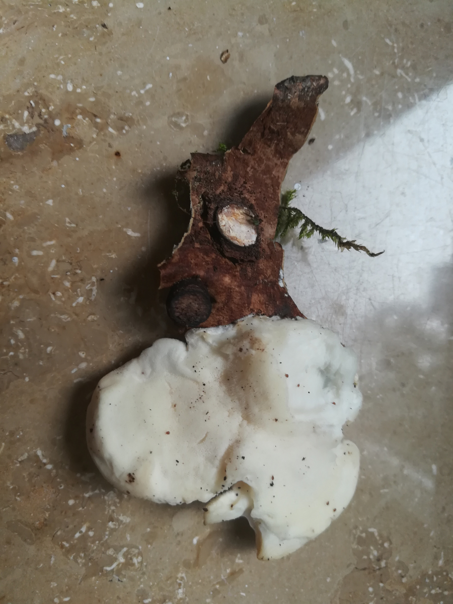 Meine Vermutung ist der Grauweiße oder Milchweiße Saftporling. Was sagt ihr?