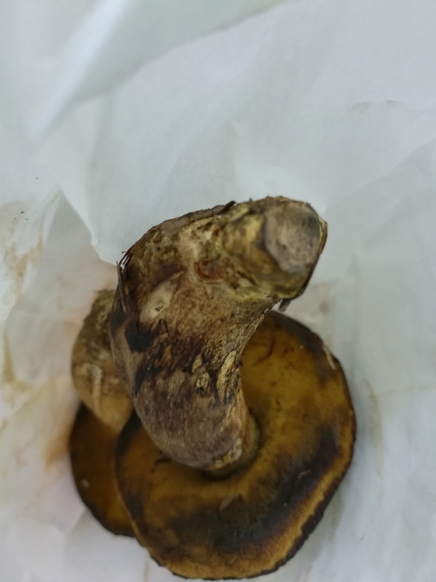 Habe aber schon wieder ein Problem festgestellt: Wenn der mit den schwärzlichen Schuppen Leccinum piceinum ist, dann kann der auch mit Kiefer?
