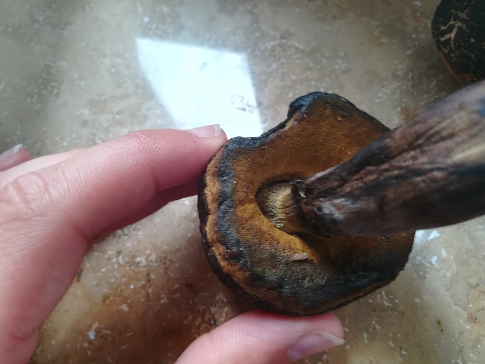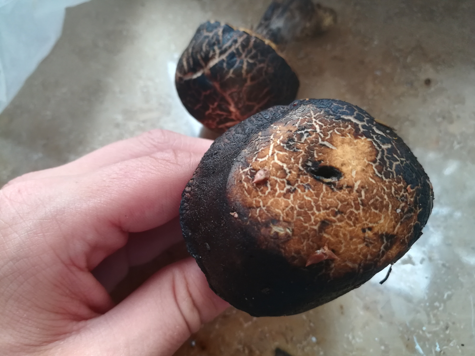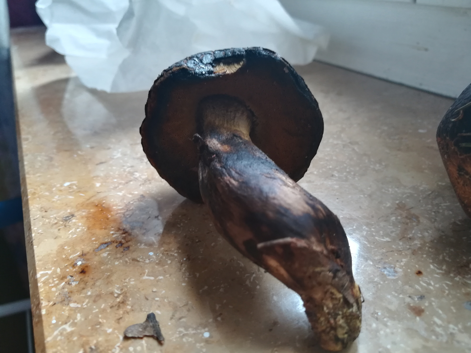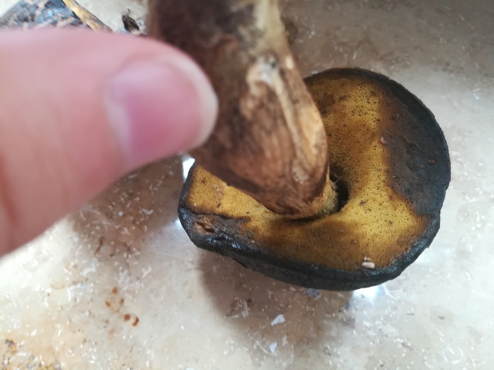 Das schwärzen außen bei diesem Fund hatte ich gar nicht berücksichtigt. Weil: angesichts der verheerenden Dürrekatastrophe und dann noch dem Hitzeunwetter in der letzten Woche ist das einfach ein Schaden, ausgelöst durch Umwelteinflüsse. Das wird man wohl bei ziemlich vielen Röhrlingen derzeit beobachten können, daß die fruchtkörper auf die Weise angegriffen werden.
