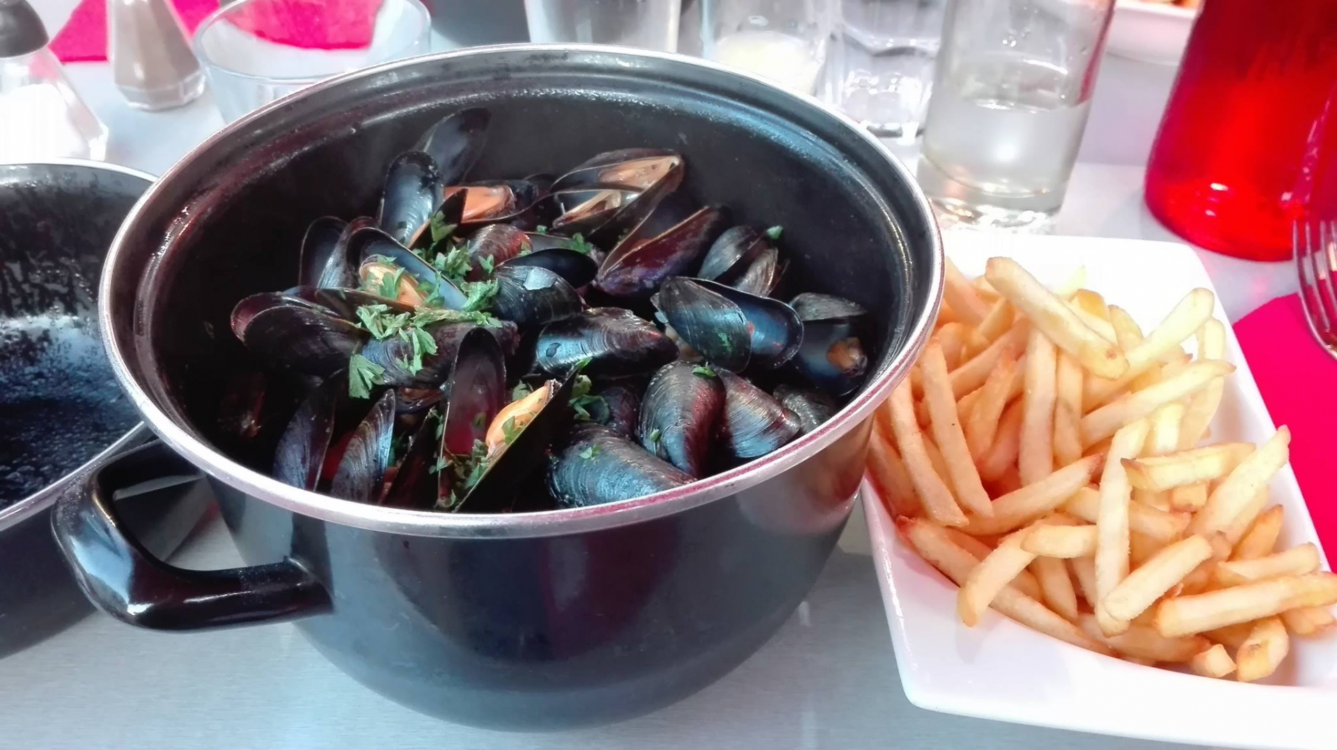 Am zweiten Abend gingen wir Essen, die typischen Moules frites. Merkwürdigerweise wird hier kein Weißbrot zu den Muscheln gereicht sondern pommes frites. Auf die Meeresfrüchte freute ich mich schon Wochen vor dem Urlaub...