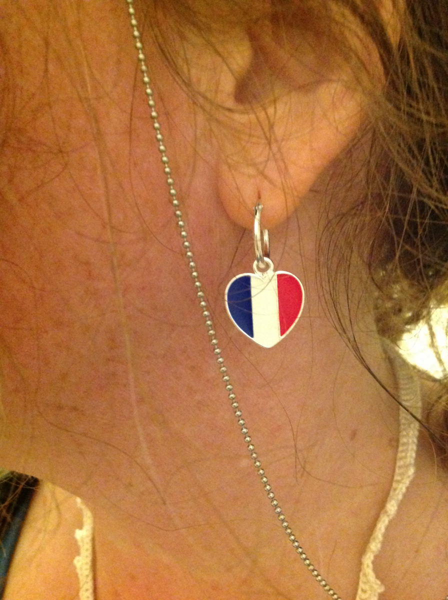 Passend zu Strand und WM wählte ich meinen Schmuck: die Tricolore an den Ohren und selbstgehäkelten Halsschmuck mit Strandgut