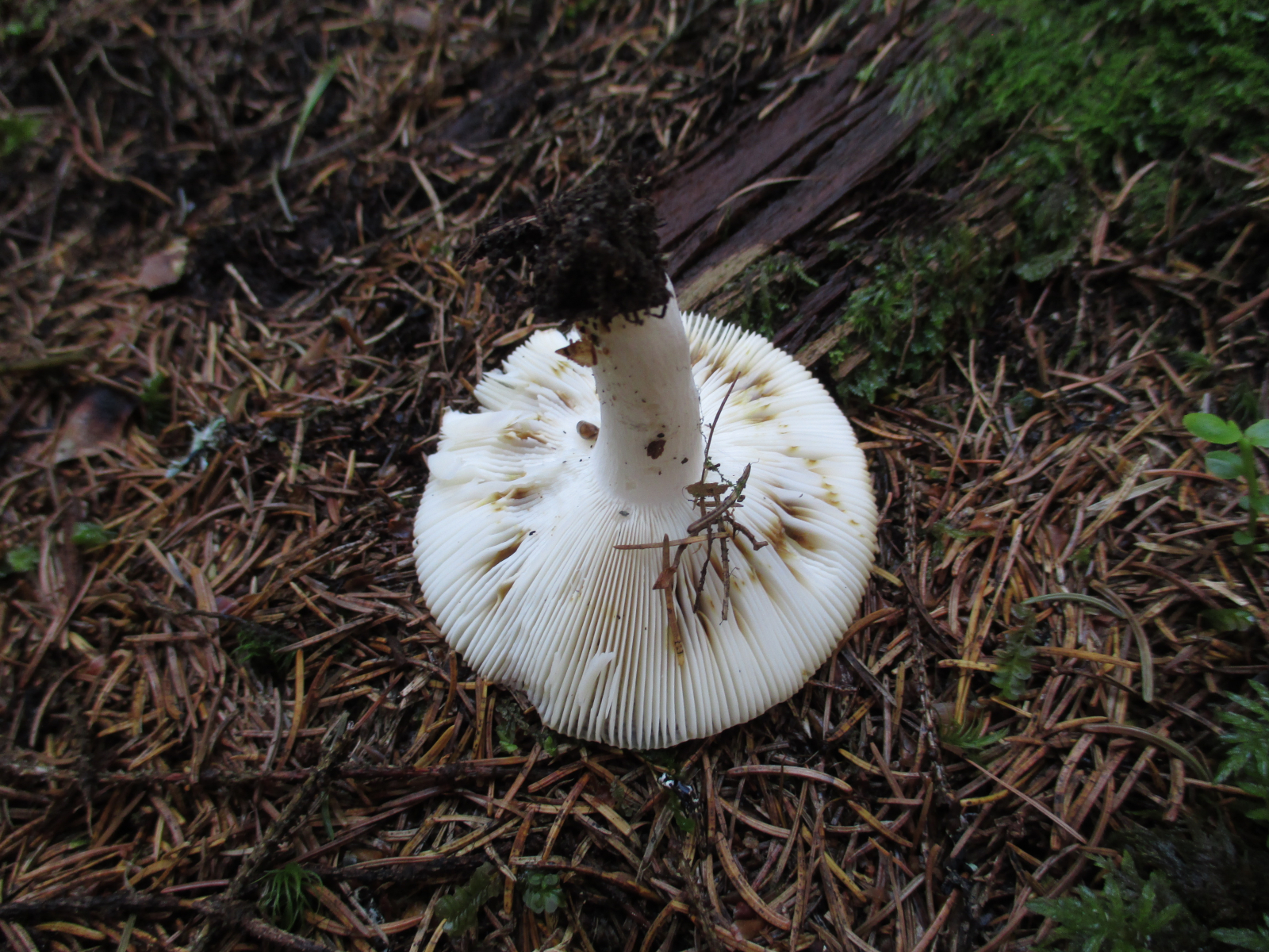 Ein Täubling. Ich vermute Russula vesca, weil die Hauthaut den Rand nicht erreichte und die Lamellen ziemlich weich waren.