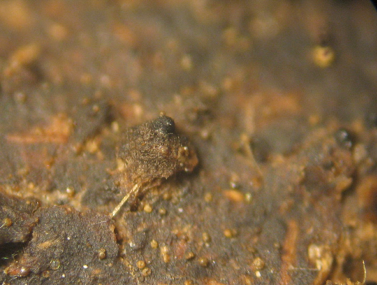 Auf dem Hirschdung kommen nun überall die Hälse und Perithecien von Arnium mendax cf heraus