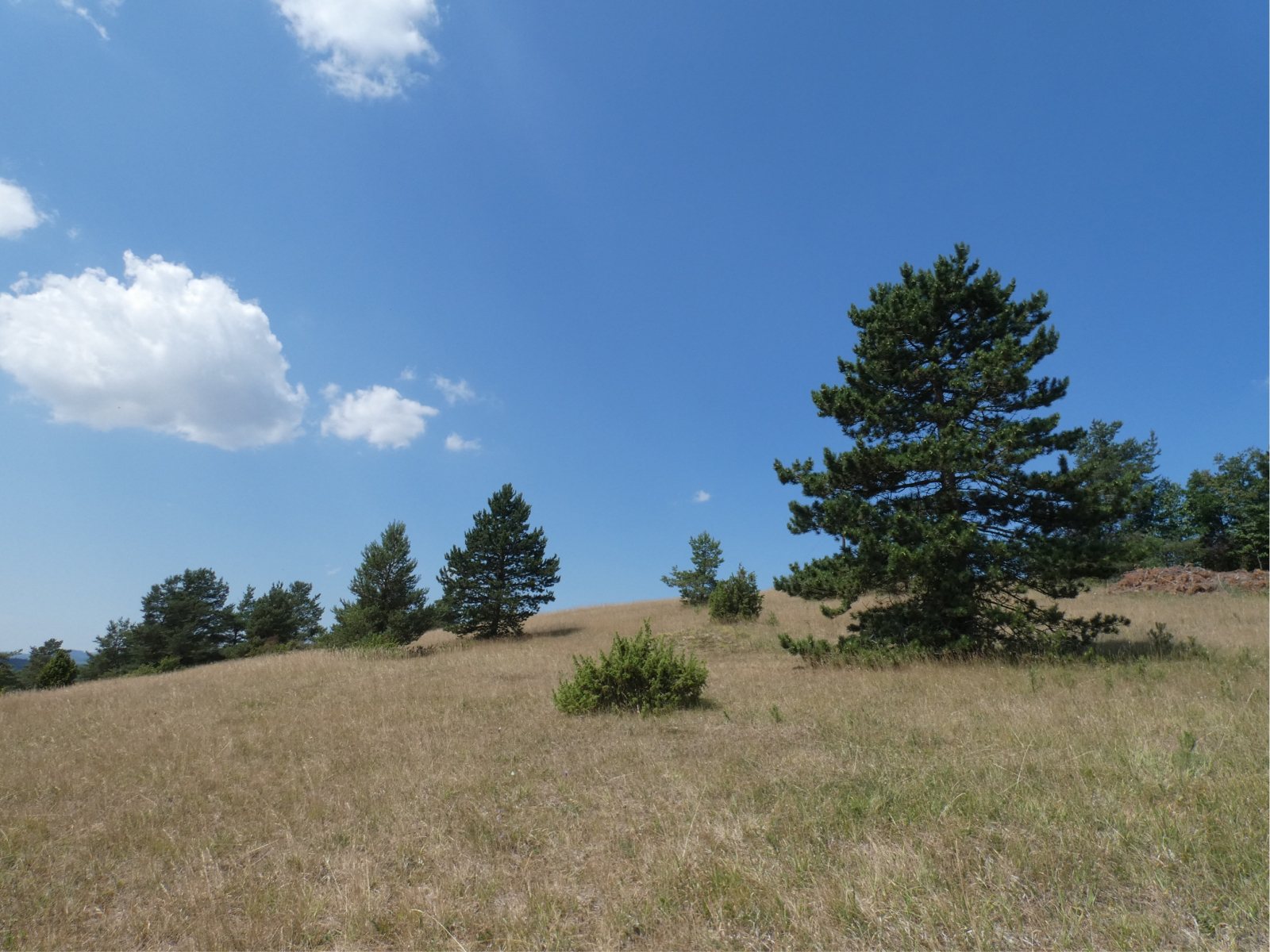 Das sind hauptsächlich Landschaftsfotos, damit ihr euch ein Bild vom Habitat der schönen Falter machen könnt - und von der (in der Hitze gebratenen) Grüni. Die Geräuschkulisse der vielen Schrecken, Grillen und Heimchen und die Rufe des segelnden Bussards kann ich leider nicht übermitteln...das müßt ihr euch vorstellen!