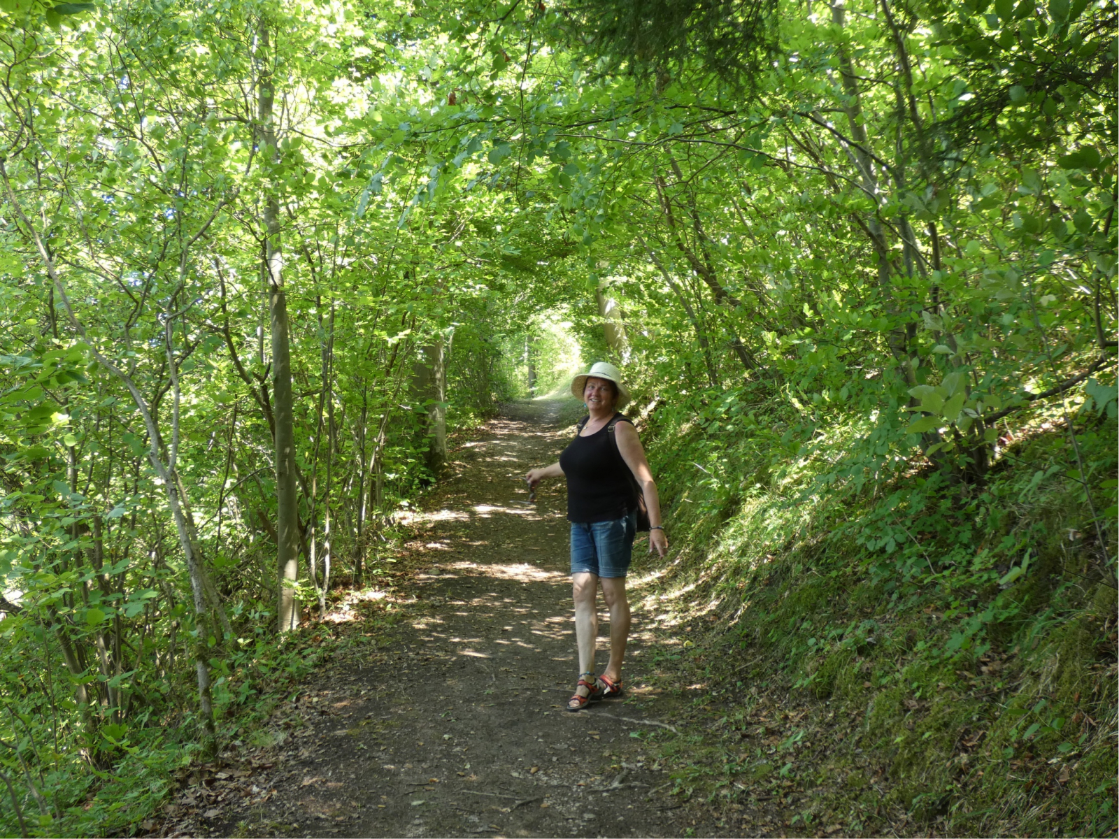 Eeeeendlich etwas Schatten! Einladender Hohlweg im Wäldchen am Berghang unterhalb der Trockenrasen.