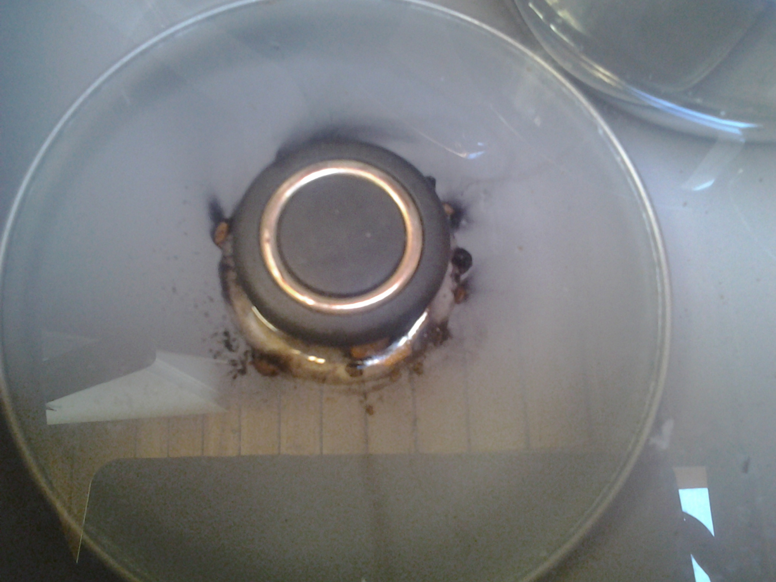 Es ist während bzw. nach dem Saubermachen eines Topfes (mit verdorbenen Spaghetti) zu komischen Gebilde auf dem Topfdeckel gekommen. Siehe Bilder unten.