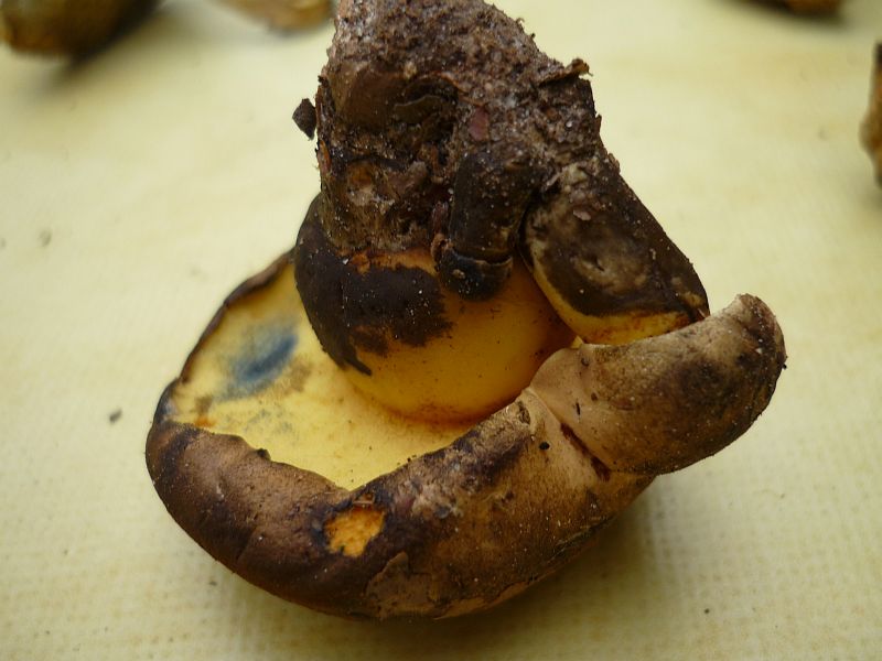 Hier erstmal ein persönlicher Erstfund: Der 2.) Schwarzblauende Röhrling Boletus pulverulentus - er lief sofort dunkelblau an, besonders zum Fuß hin - habe mich sehr gefreut.