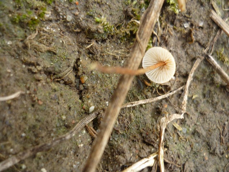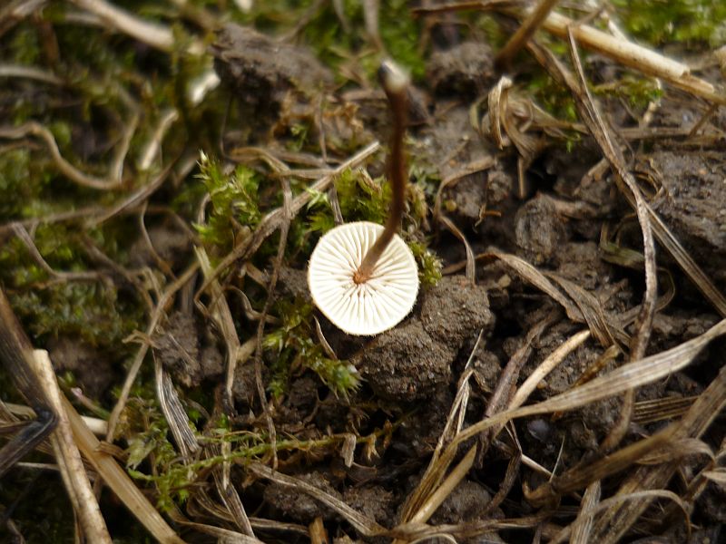 Jenseits des Waldes gabs auch noch etwas interessantes: In einem güllegetränkten Maisfeld wuchsen diese 9.) kleinen Pilze, die mich auf den ersten Blick an Schwindlinge erinnerten, der spitze Hut deutet aber wohl auf etwas anderes hin? Größe war ein halber bis ein cm.